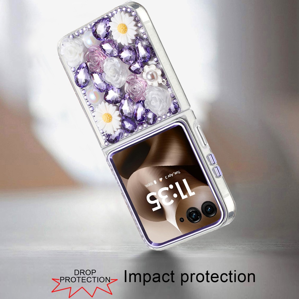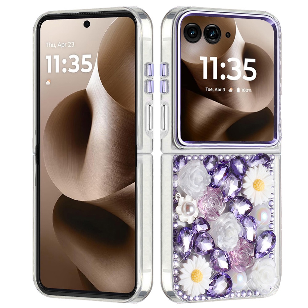 For Motorola Razr Ultra 2025 Spectacular Full Bling Stones Glitter HQ Hybrid Floral Series - Purple