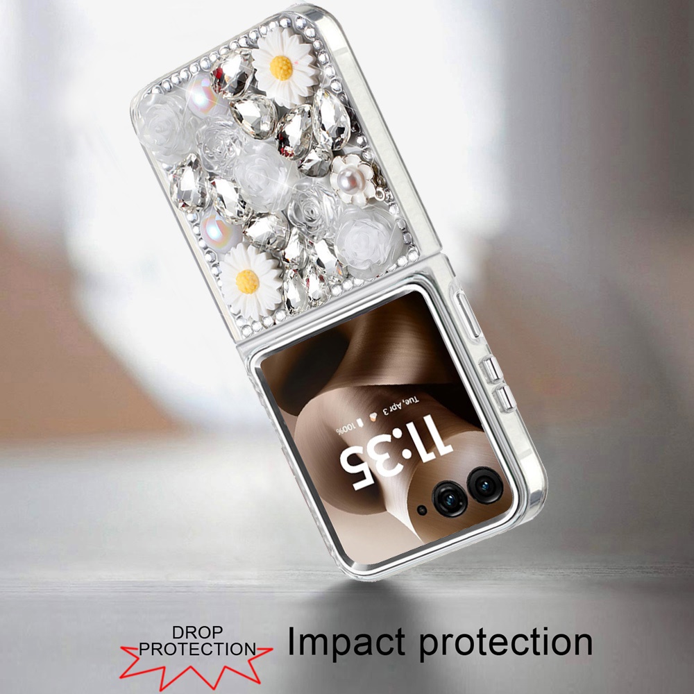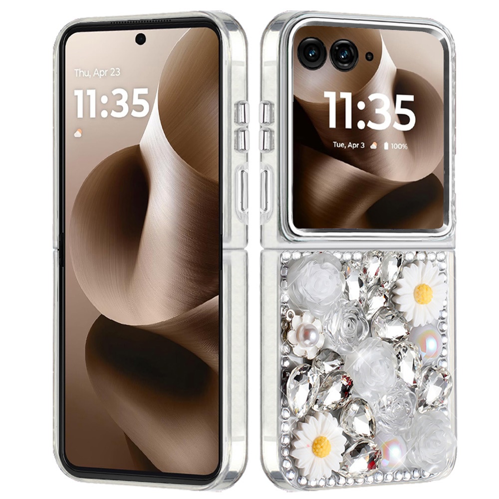 For Motorola Razr Ultra 2025 Spectacular Full Bling Stones Glitter HQ Hybrid Floral Series - White