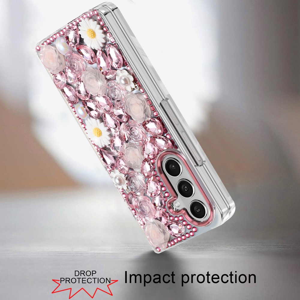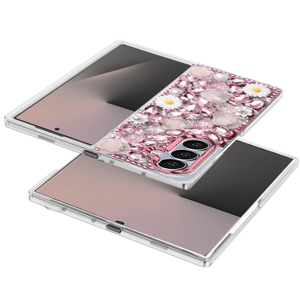 For Samsung Z Fold 7 Spectacular Full Bling Stones Glitter HQ Hybrid Floral Series - Pink