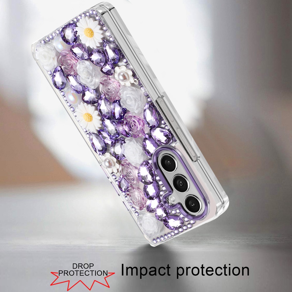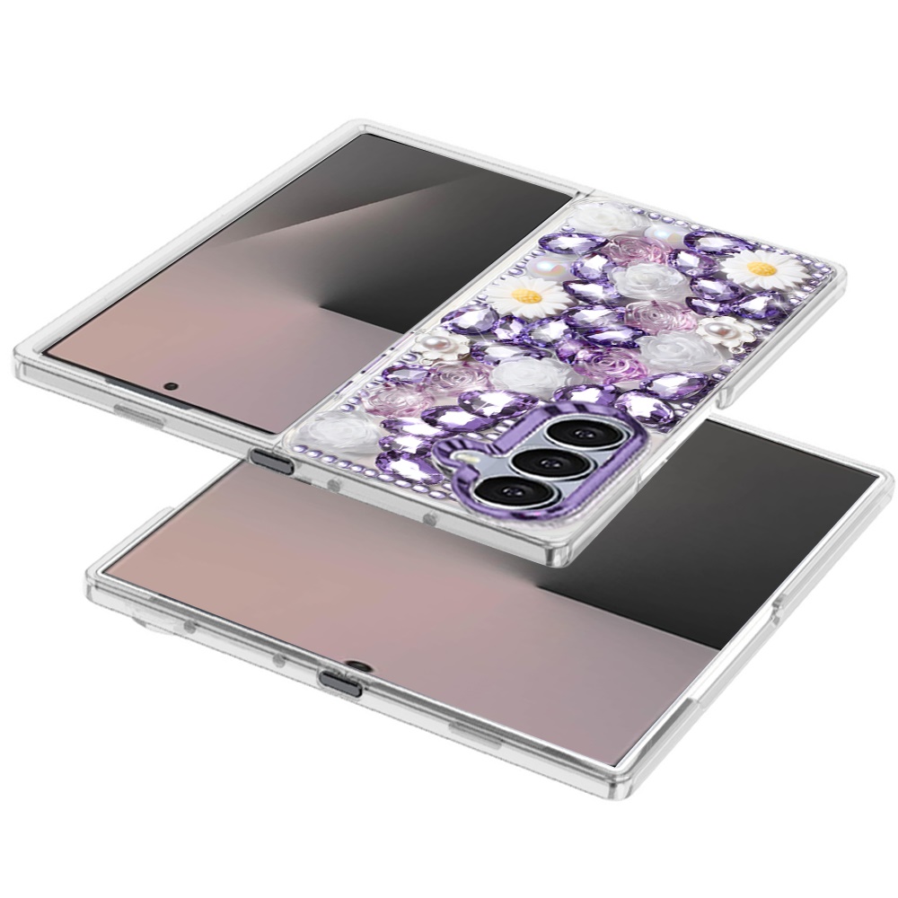 For Samsung Z Fold 7 Spectacular Full Bling Stones Glitter HQ Hybrid Floral Series - Purple
