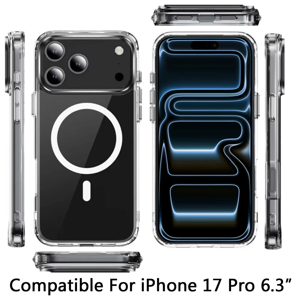 For iPhone 17 Pro Thick Transparent [Magnetic Circle] Shockproof Hybrid - Clear