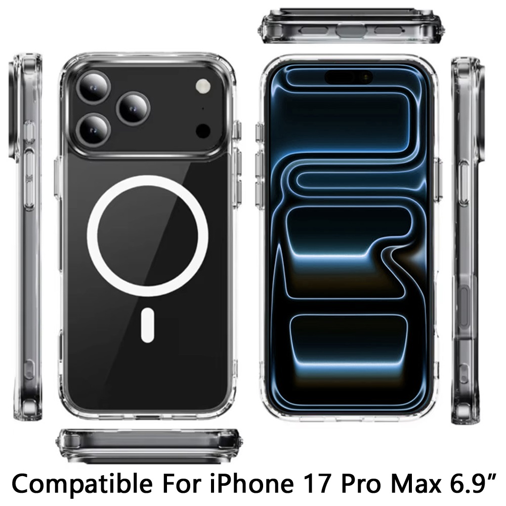 For iPhone 17 Pro Max Thick Transparent [Magnetic Circle] Shockproof Hybrid - Clear