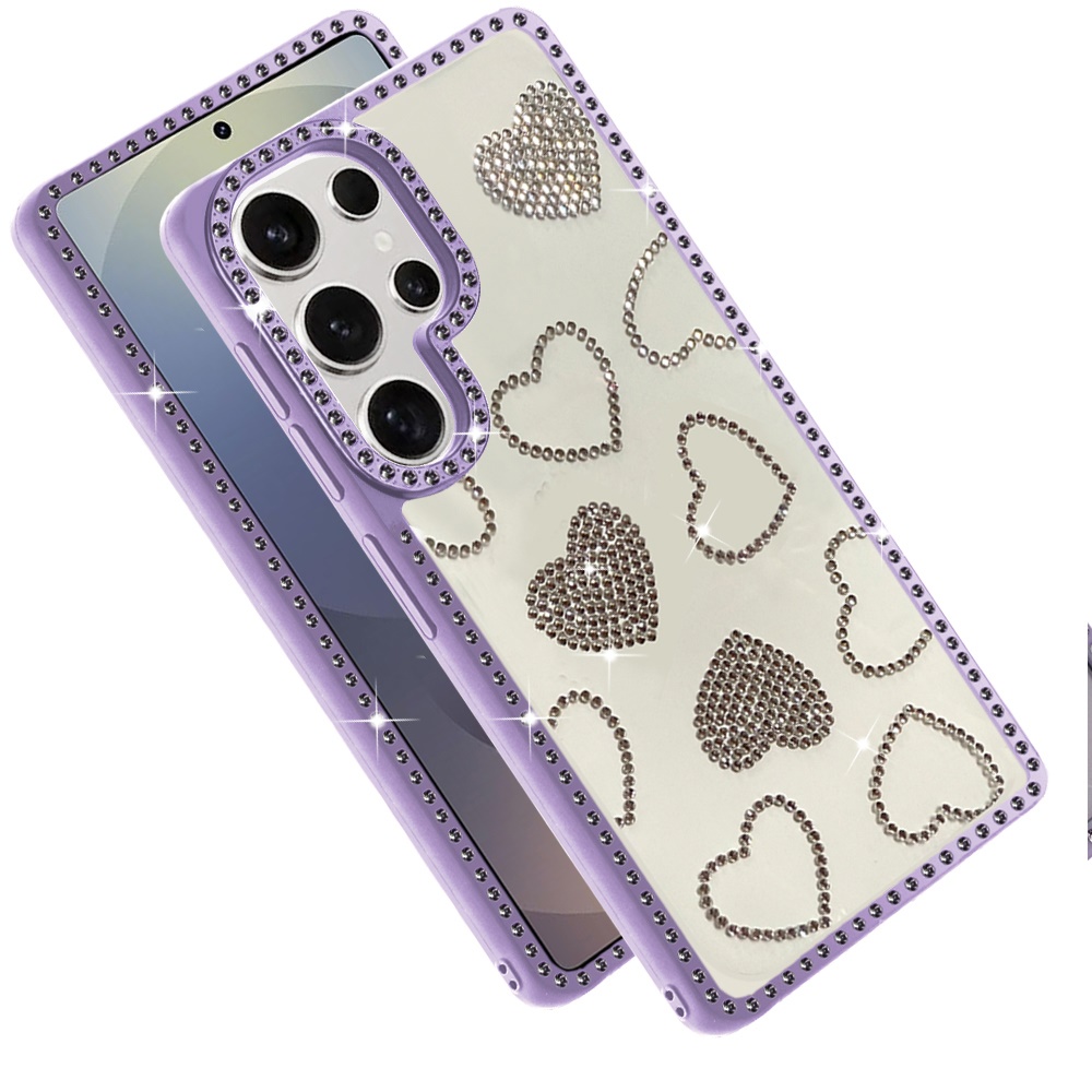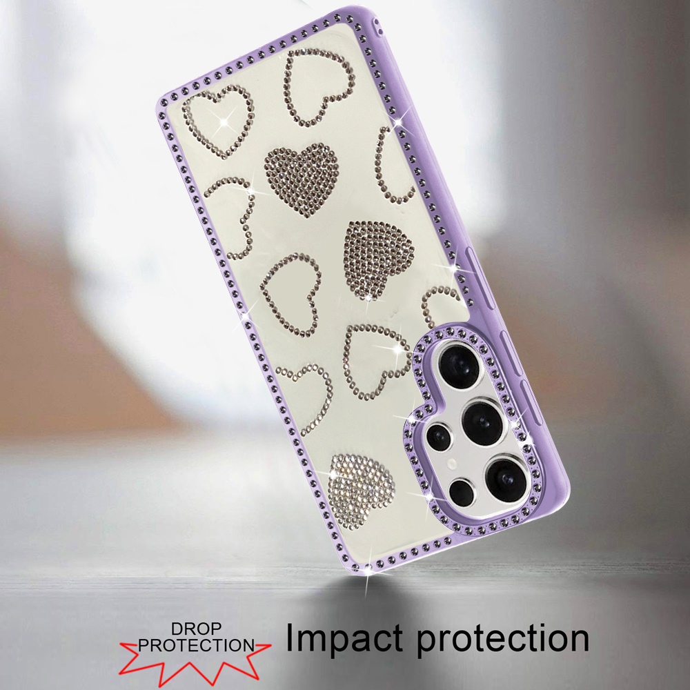 For Samsung s25 Ultra Spread Love Glitter Shimmer Diamond Edged Hybrid Case - Purple