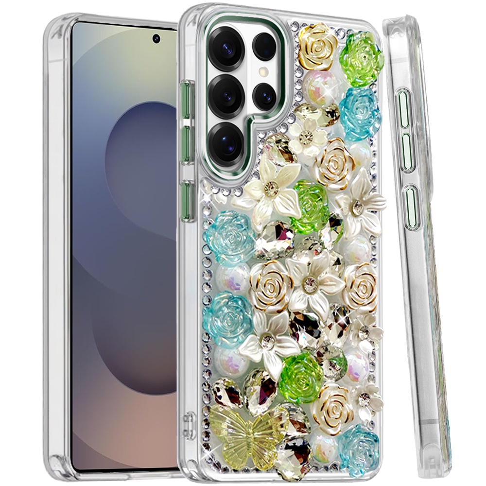 For Samsung s25 Ultra Muti-Color Rose Bling Stones Ornaments Case - Green