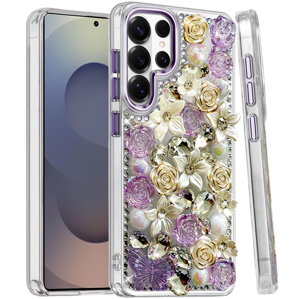 For Samsung s25 Ultra Muti-Color Rose Bling Stones Ornaments Case - Purple