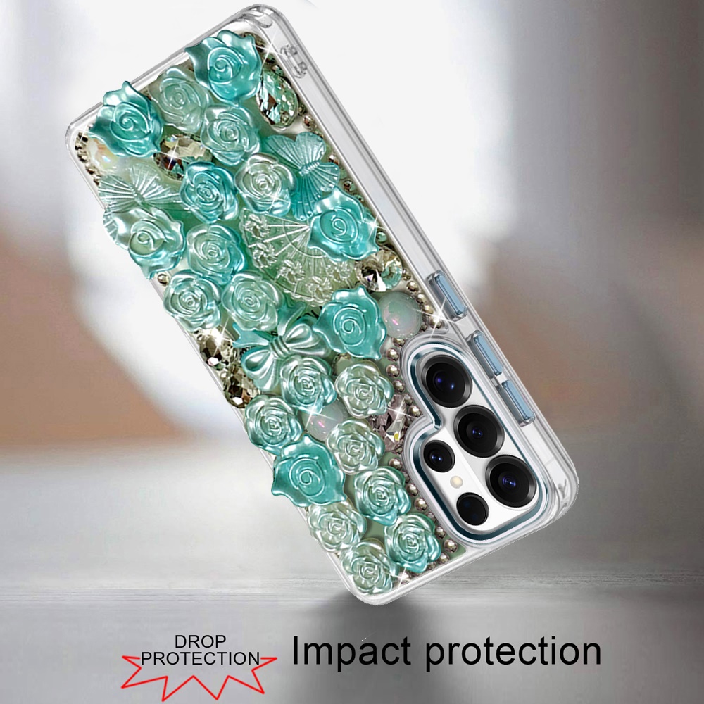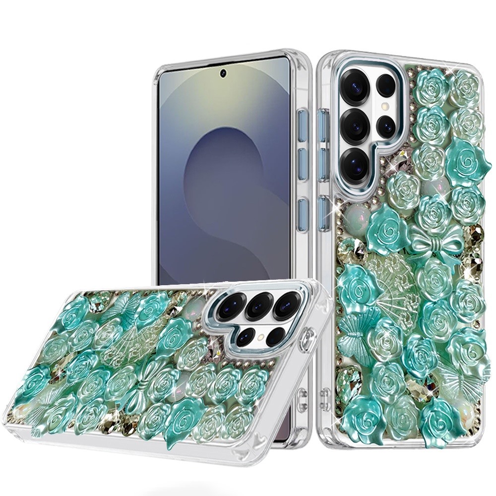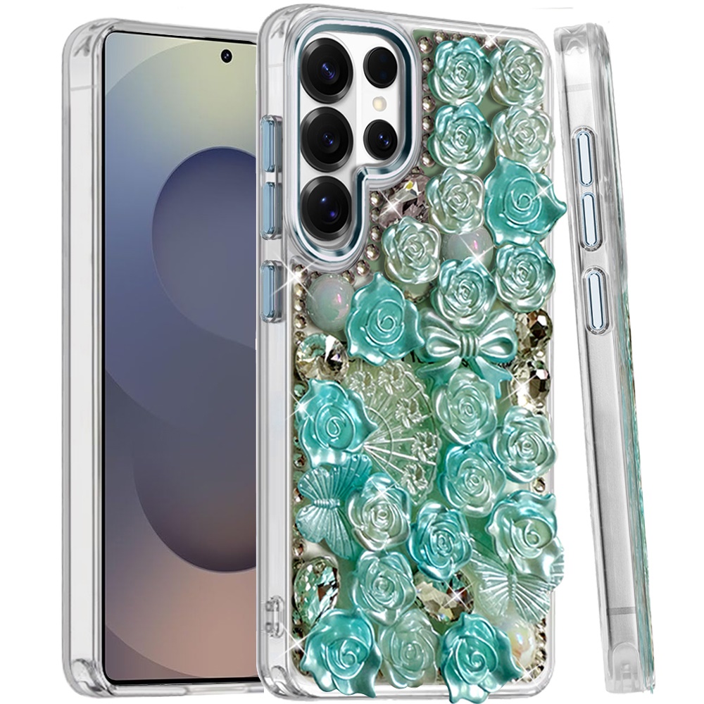For Samsung s25 Ultra Muti-Color Floral Bling Stones Ornaments Case - Blue