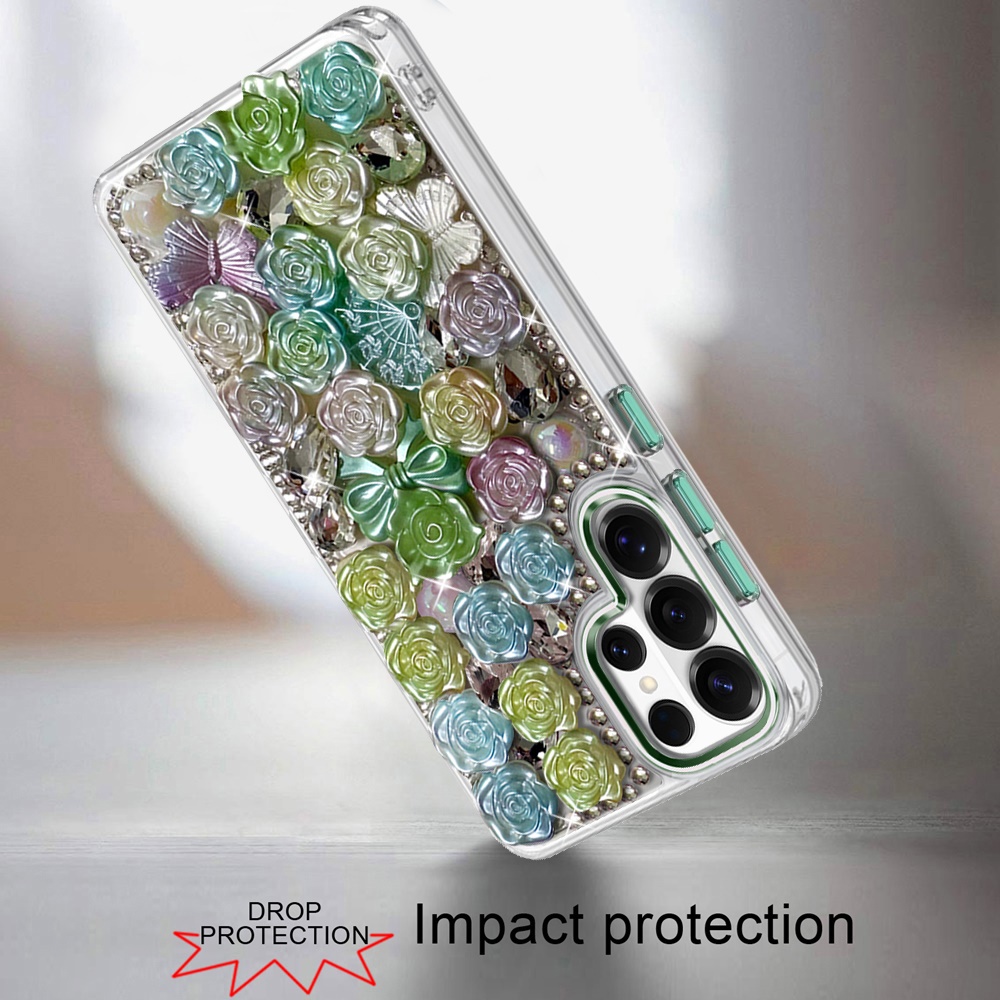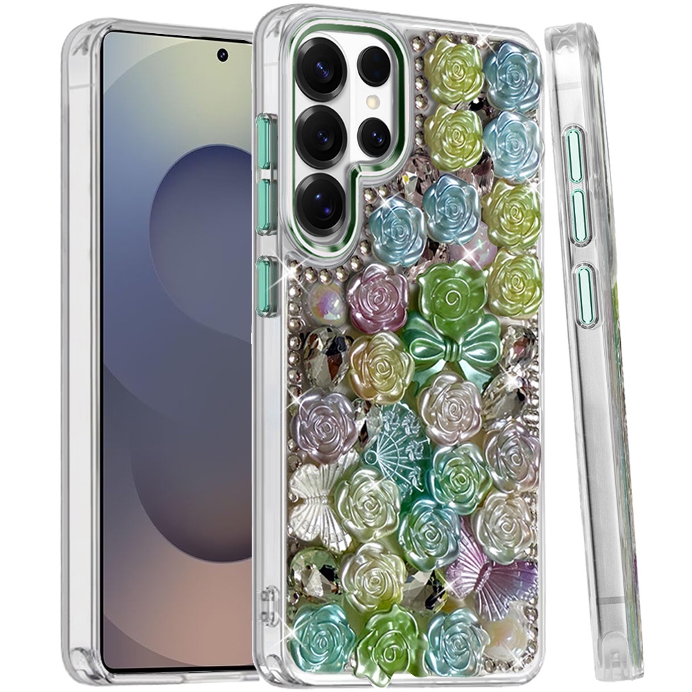 For Samsung s25 Ultra Muti-Color Floral Bling Stones Ornaments Case - Green