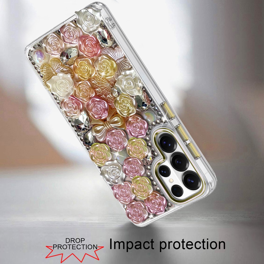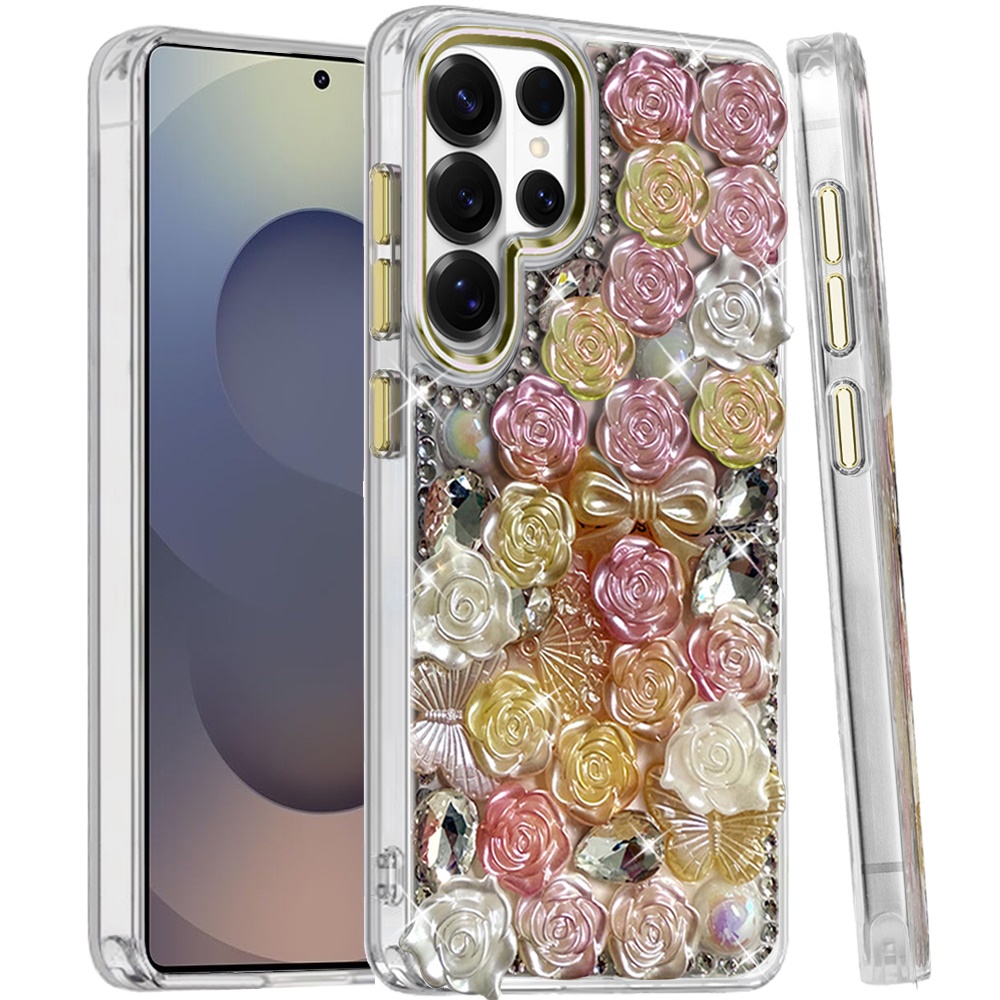 For Samsung s25 Ultra Muti-Color Floral Bling Stones Ornaments Case - Orange