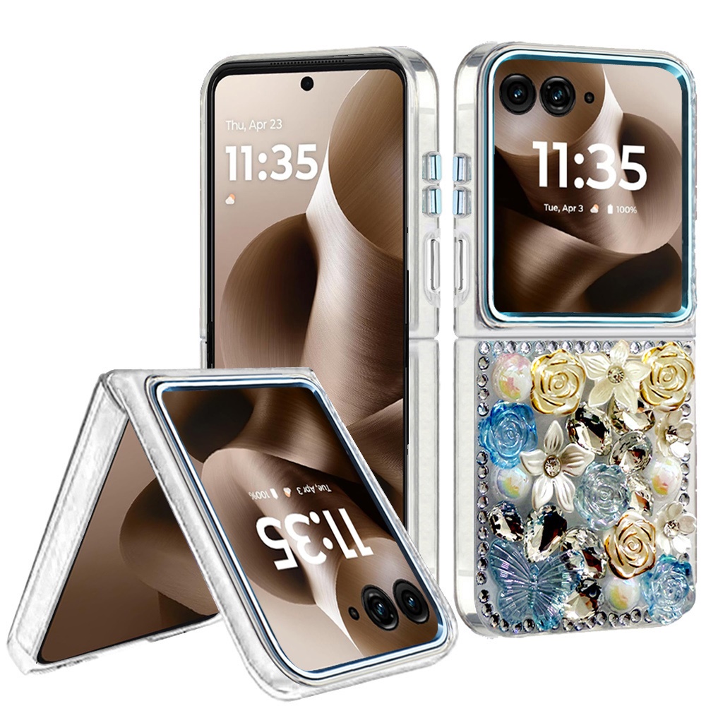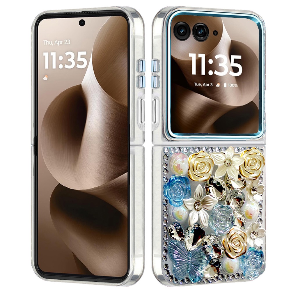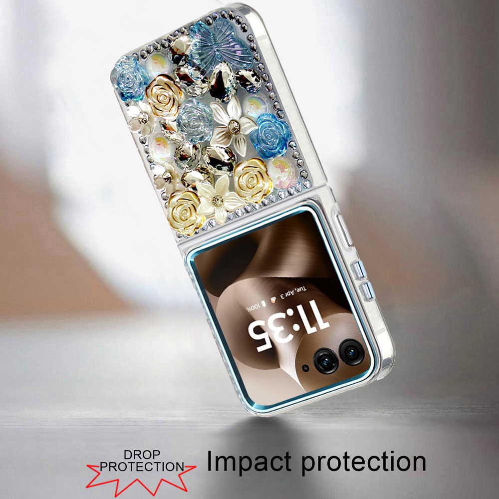 For Motorola Razr Ultra 2025 Muti-Color Rose Bling Stones Ornaments Case - Blue