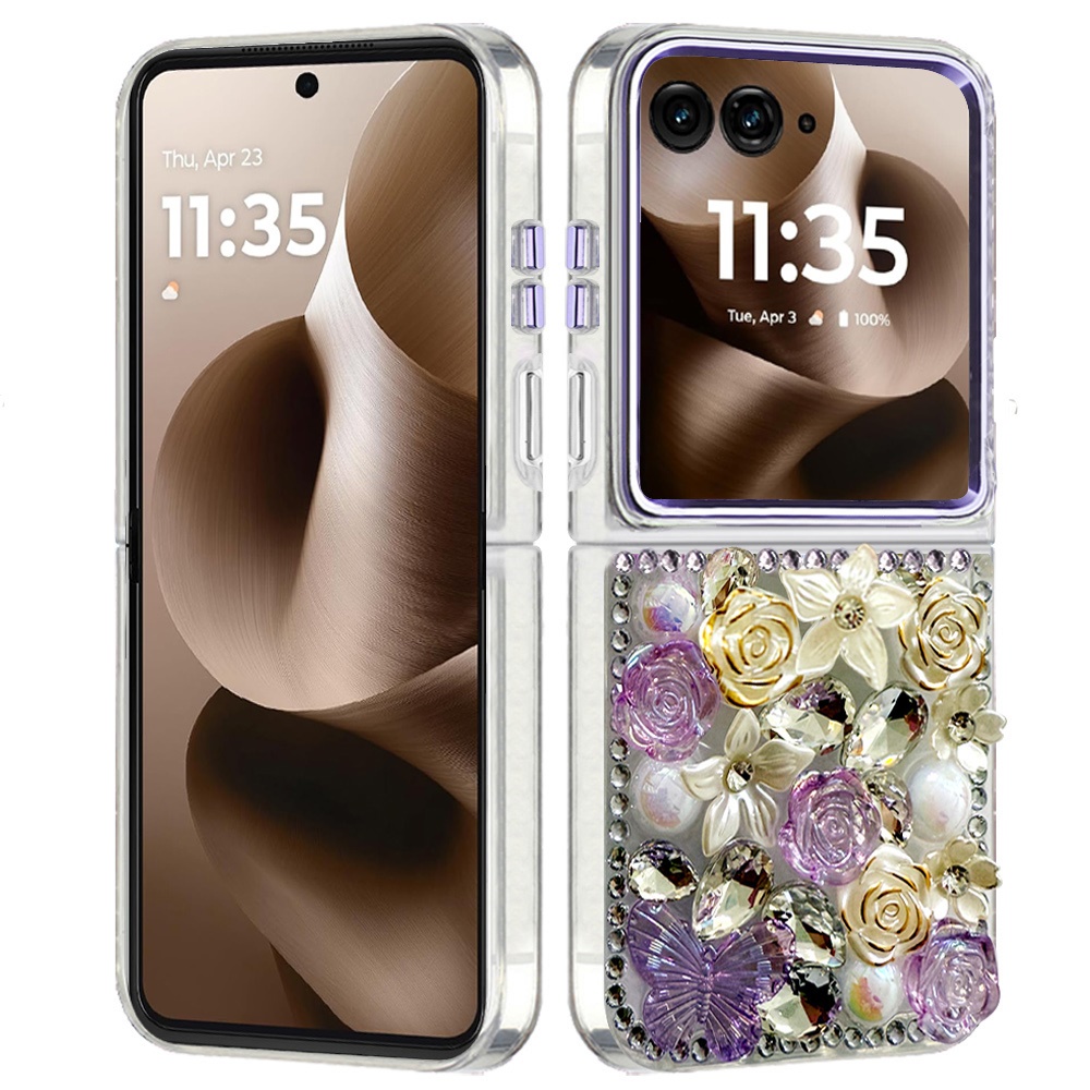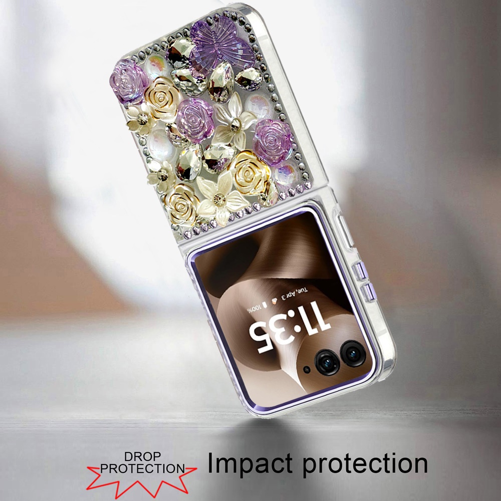 For Motorola Razr Ultra 2025 Muti-Color Rose Bling Stones Ornaments Case - Purple