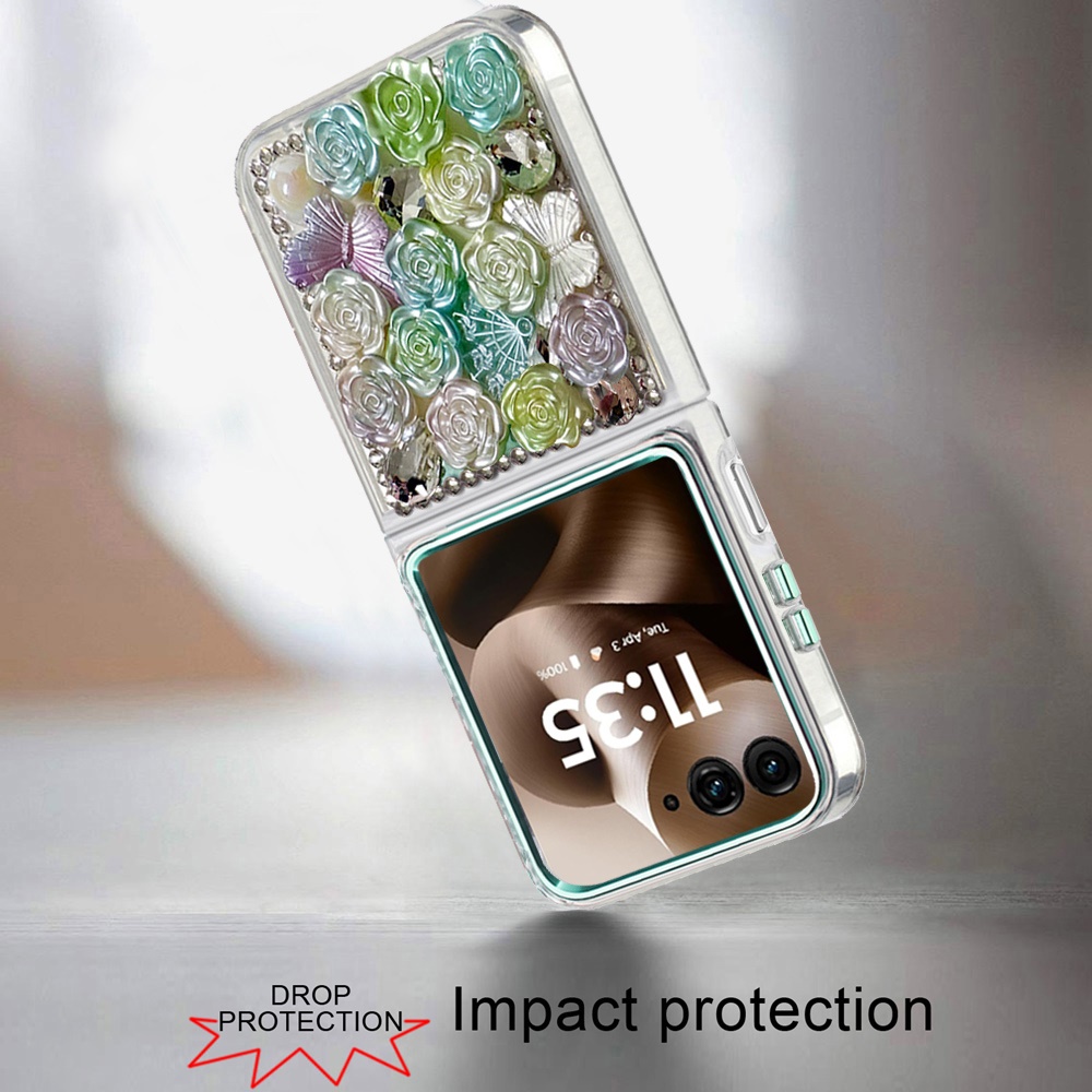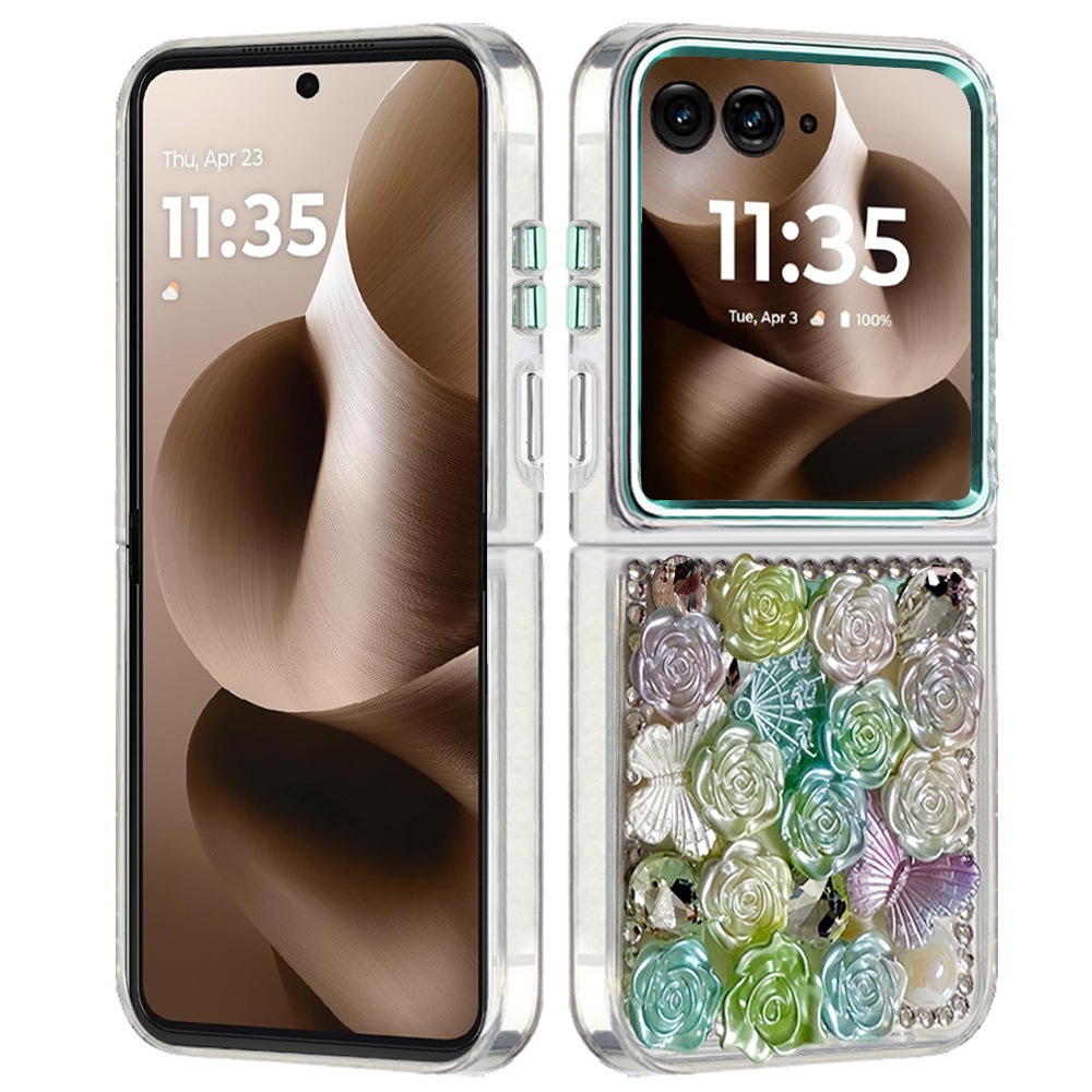 For Motorola Razr Ultra 2025 Muti-Color Floral Bling Stones Ornaments Case - Green
