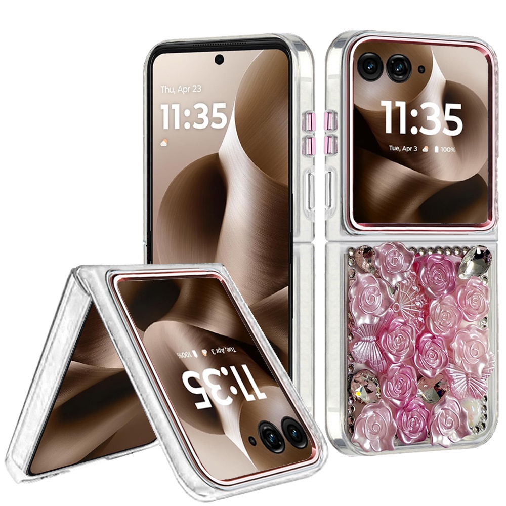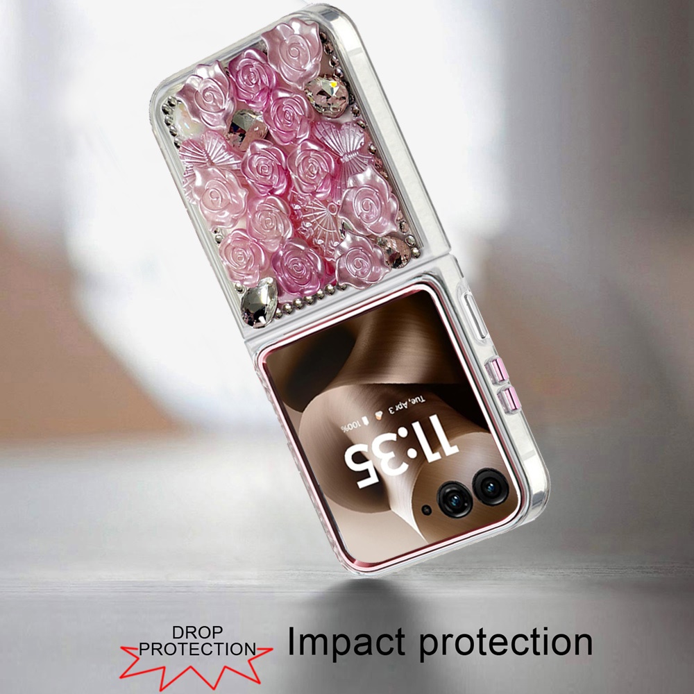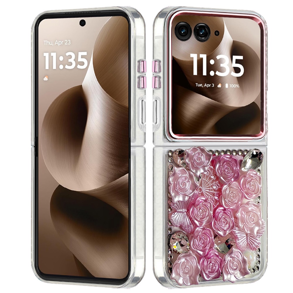 For Motorola Razr Ultra 2025 Muti-Color Floral Bling Stones Ornaments Case - Pink
