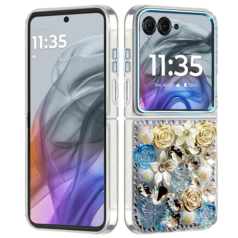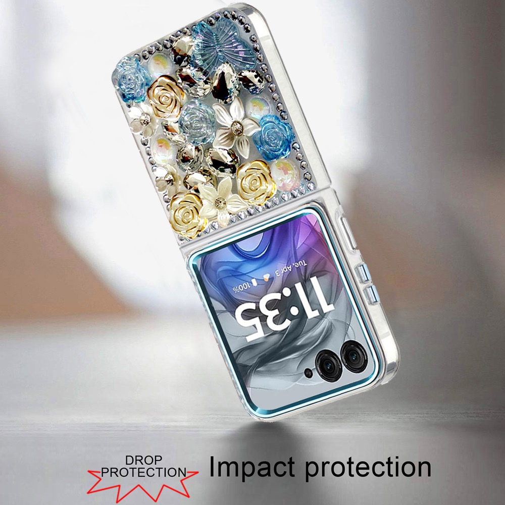 For Motorola Razr 2025 2024 Muti-Color Rose Bling Stones Ornaments Case - Blue