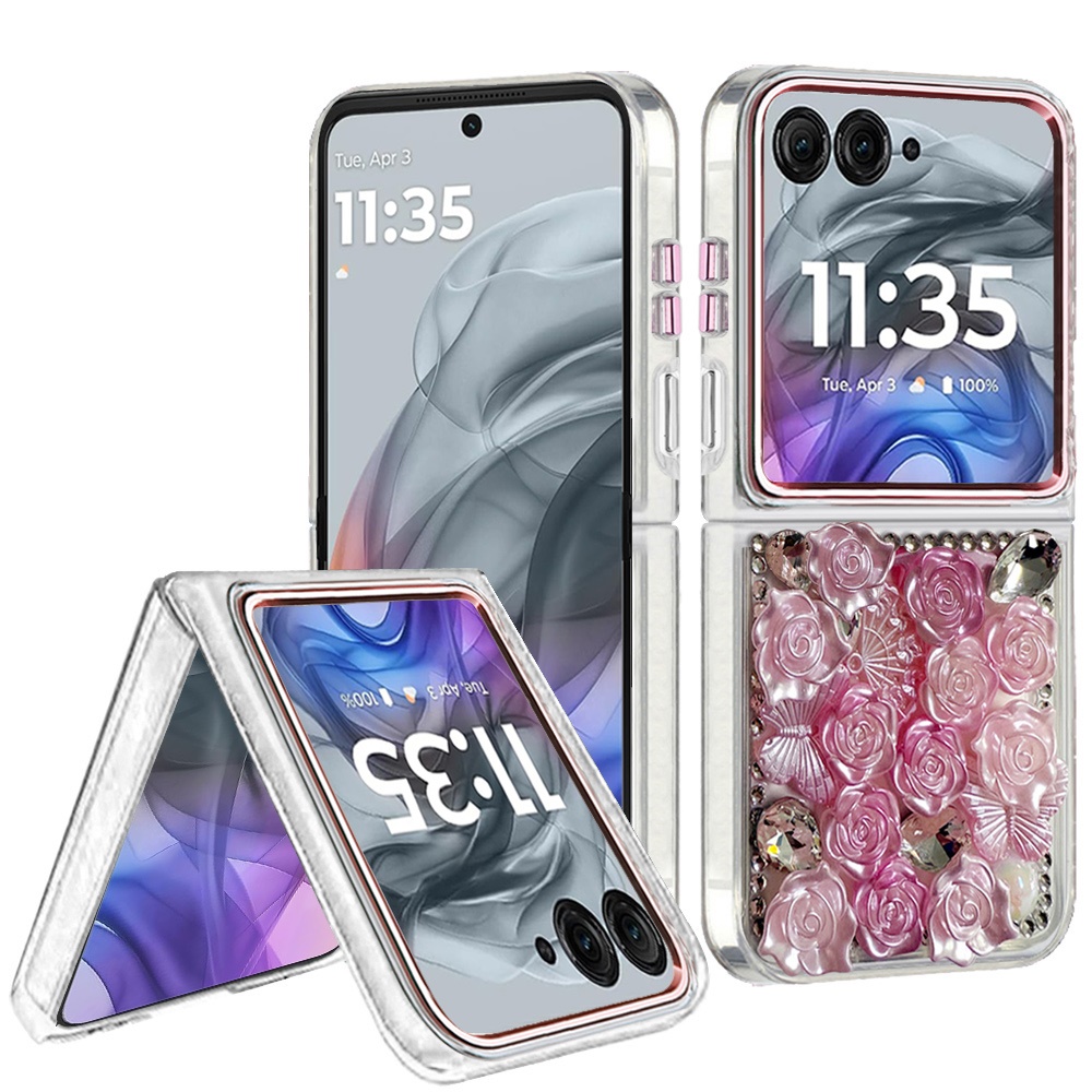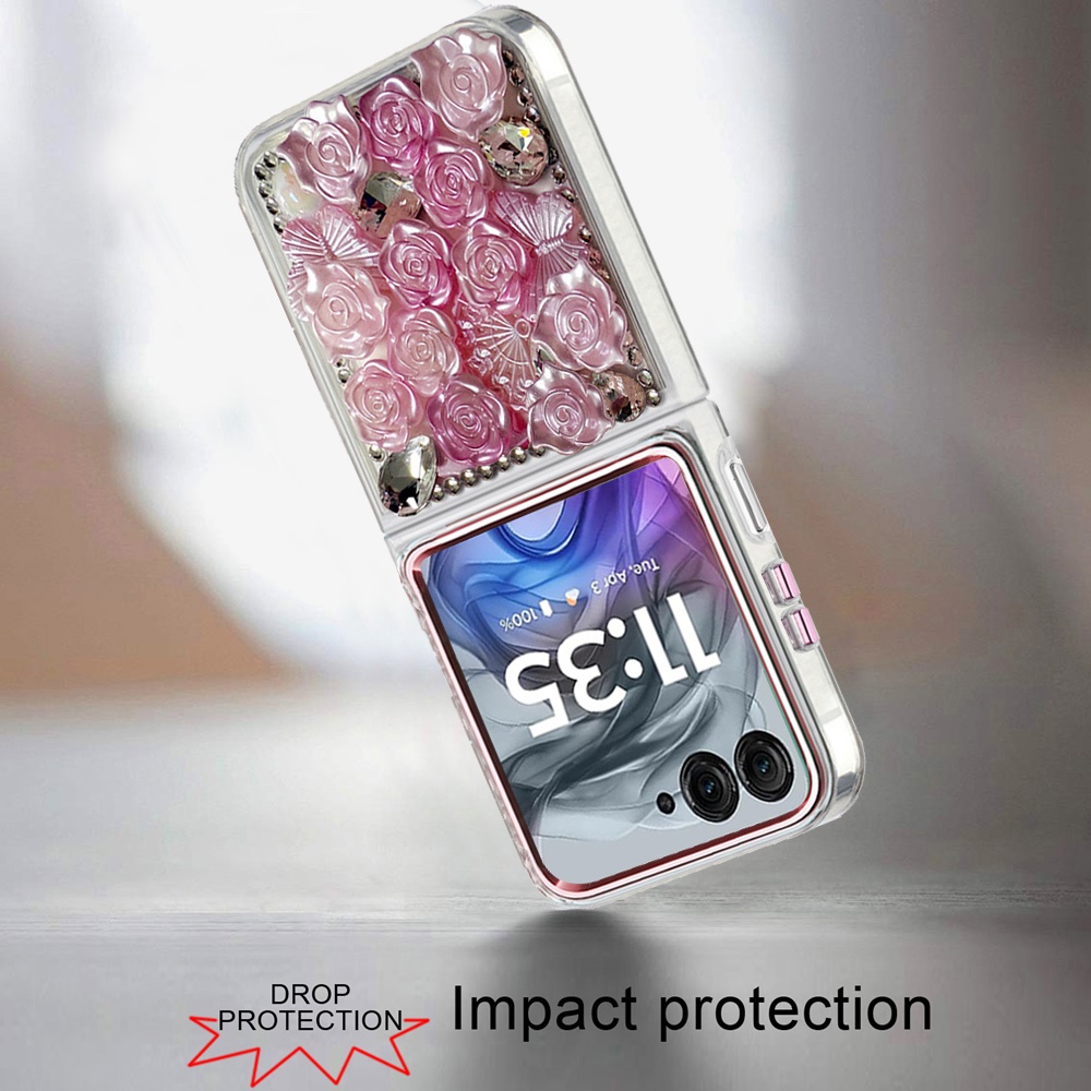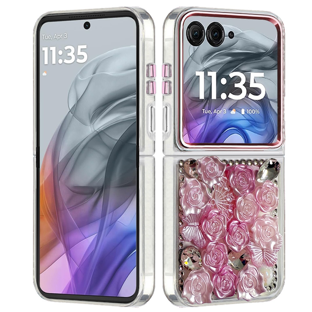 For Motorola Razr 2025 2024 Muti-Color Floral Bling Stones Ornaments Case - Pink
