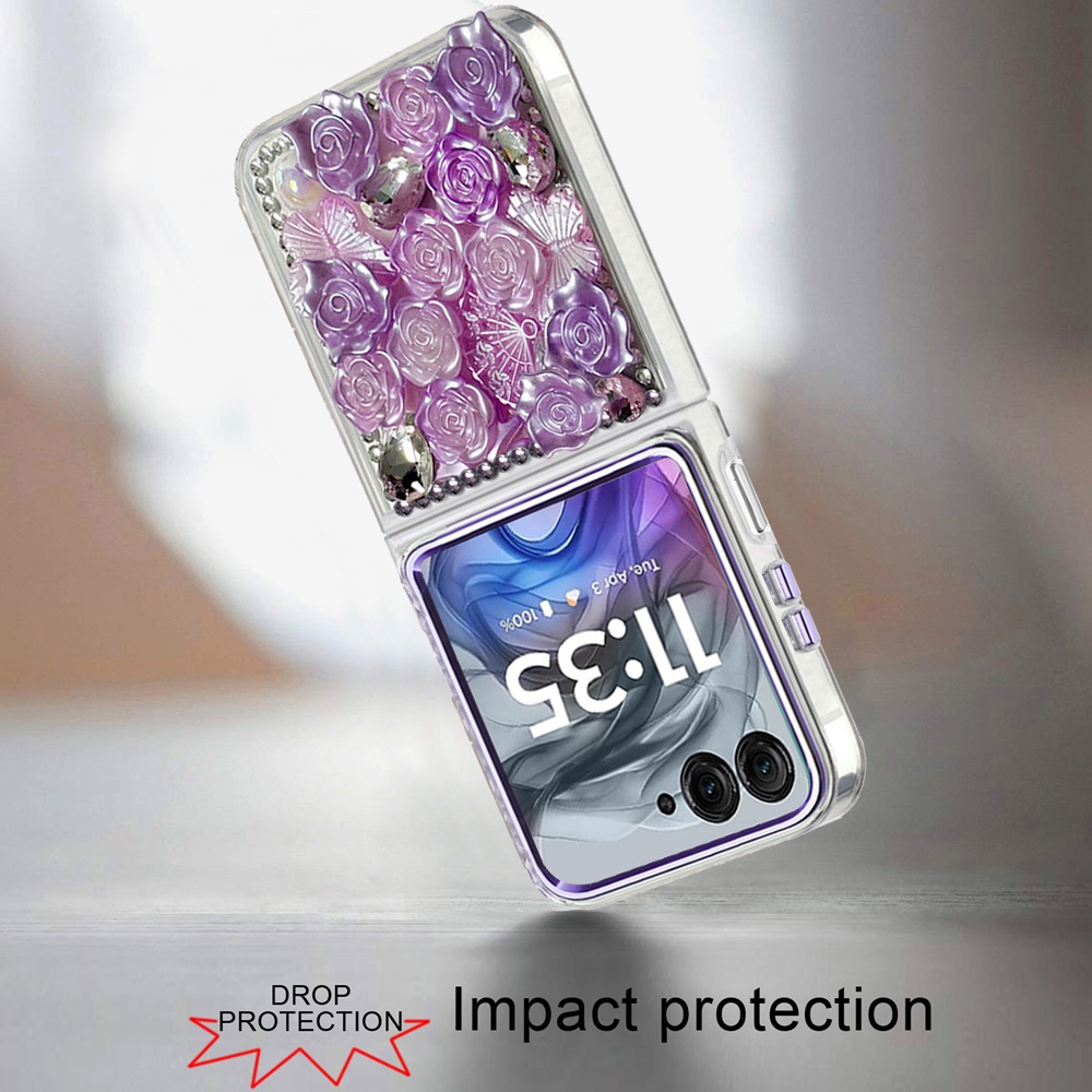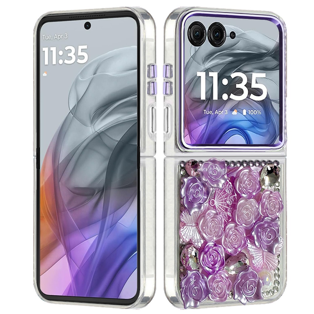 For Motorola Razr 2025 2024 Muti-Color Floral Bling Stones Ornaments Case - Purple