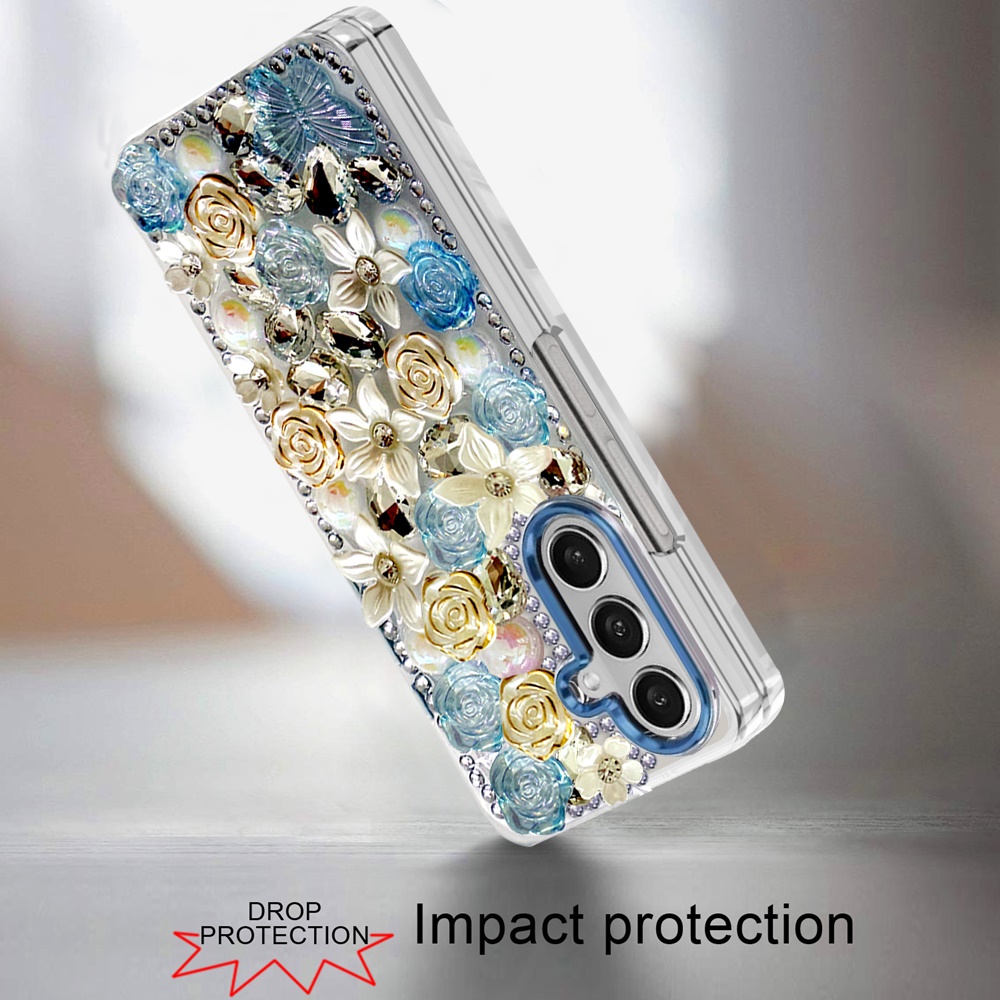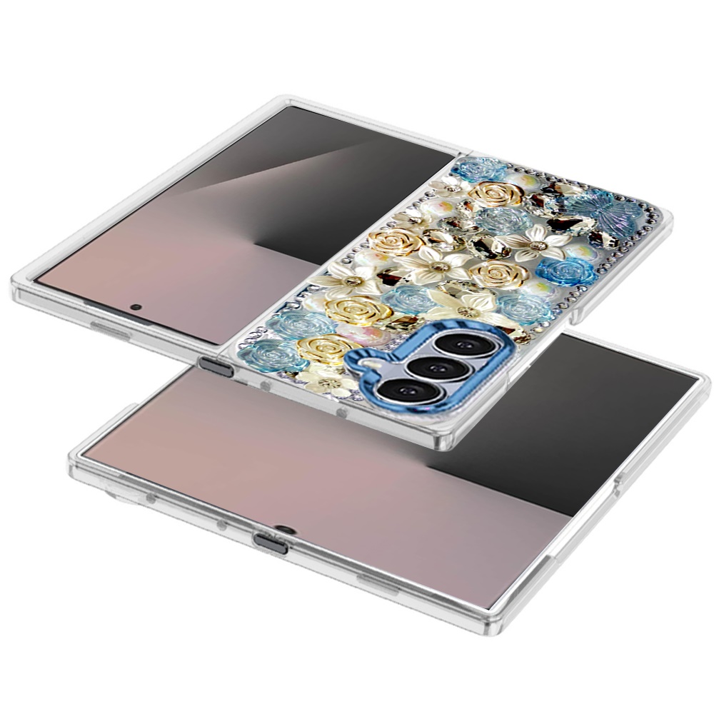 For Samsung Z Fold 7 Muti-Color Rose Bling Stones Ornaments Case - Blue