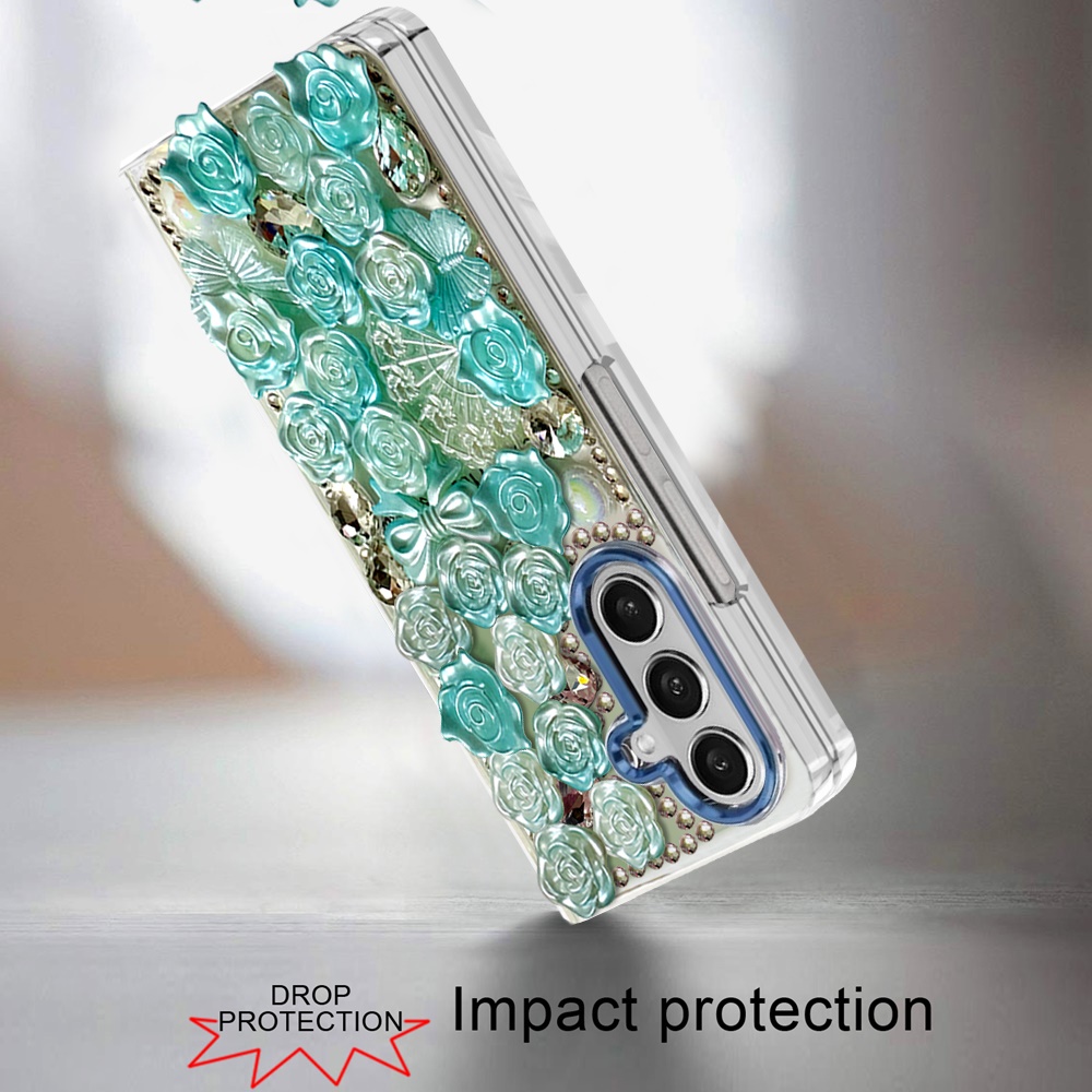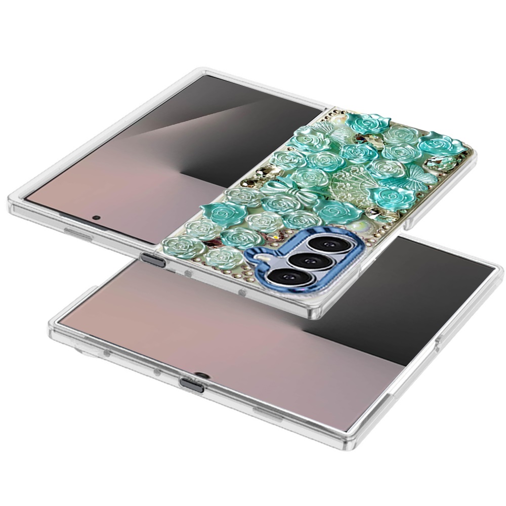 For Samsung Z Fold 7 Muti-Color Floral Bling Stones Ornaments Case - Blue