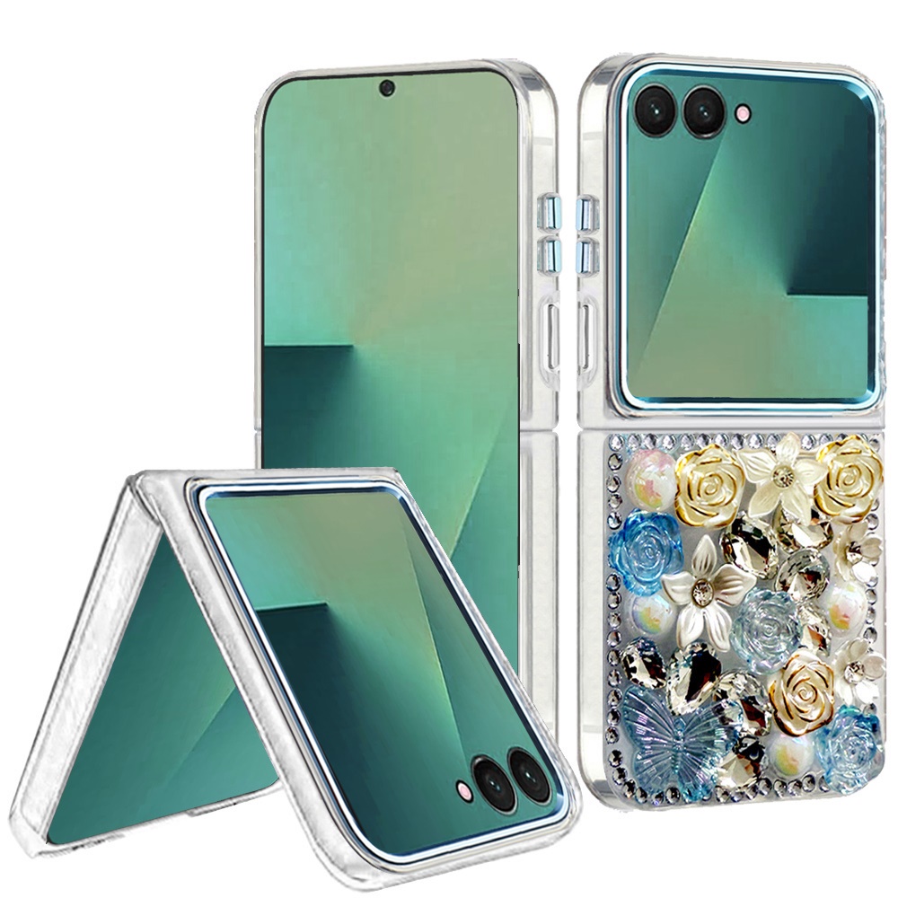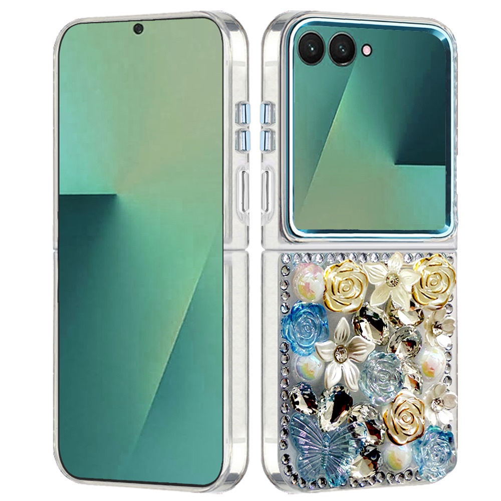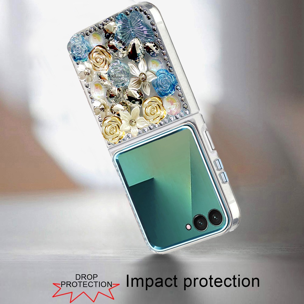 For Samsung Z Flip 7 Muti-Color Rose Bling Stones Ornaments Case - Blue