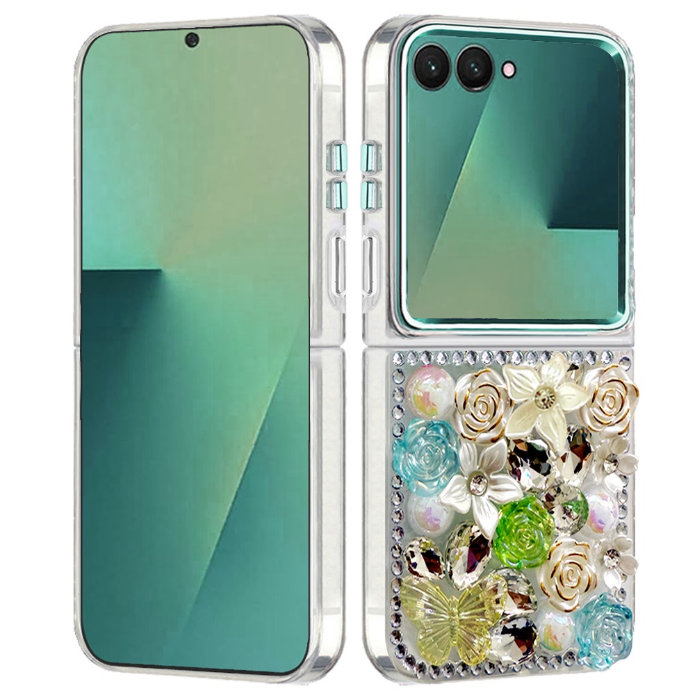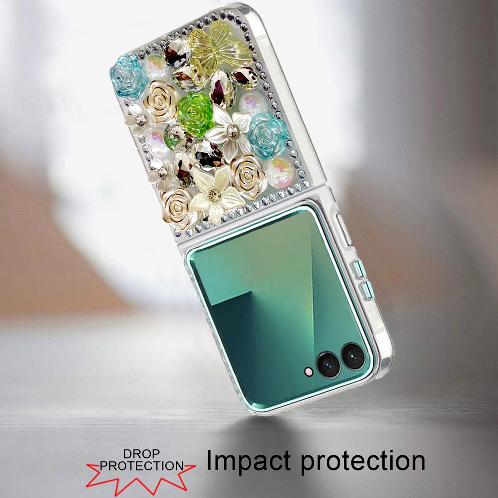 For Samsung Z Flip 7 Muti-Color Rose Bling Stones Ornaments Case - Green