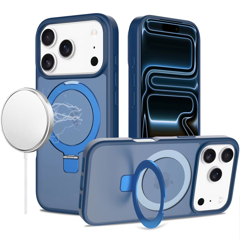 For iPhone 17 Pro Max Magnetic Matching Ring Stand Full Rotation Matte Hybrid - Blue