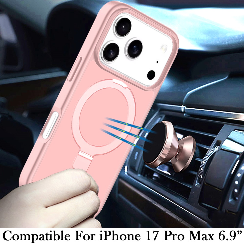 For iPhone 17 Pro Max Magnetic Matching Ring Stand Full Rotation Matte Hybrid - Light Pink