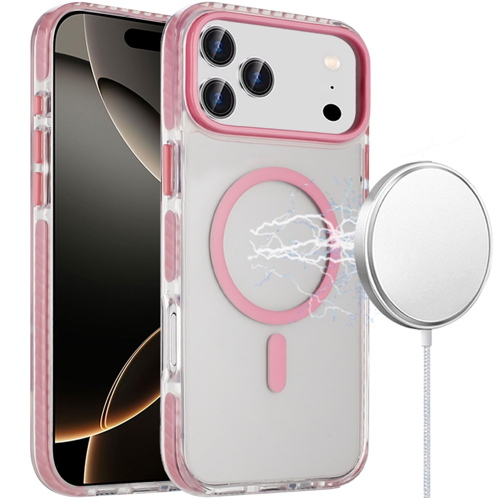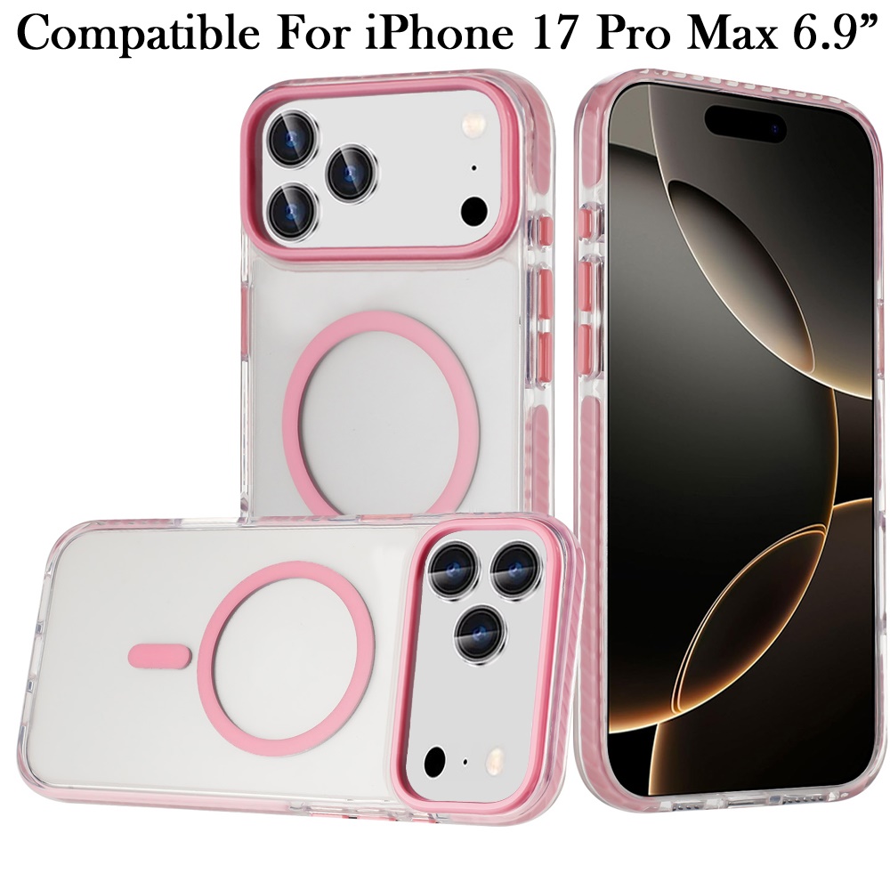 For iPhone 17 Pro Max Transparent Matching Color Magnetic Ring Hybrid - Pink