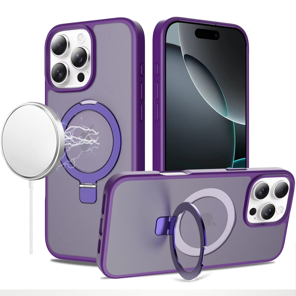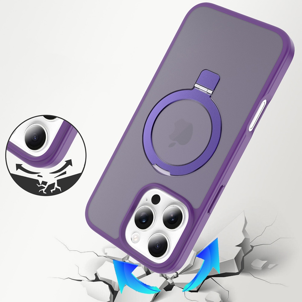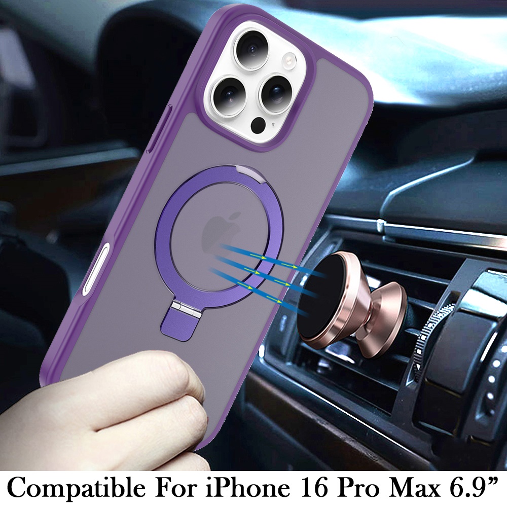For iPhone 16 Pro Max 6.9 Magnetic Matching Ring Stand Full Rotation Matte Hybrid - Dark Purple