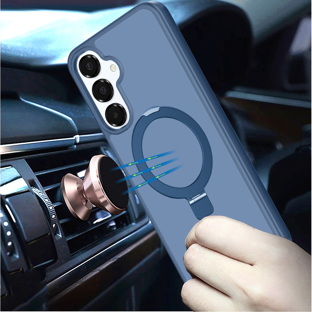 For Samsung A16 5G Magnetic Matching Ring Stand Full Rotation Matte Hybrid - Blue