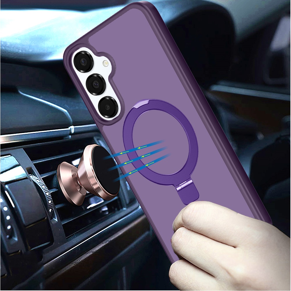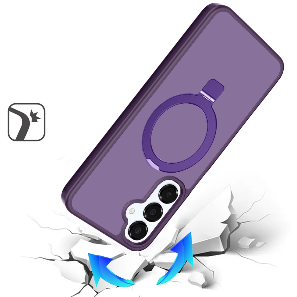 For Samsung A16 5G Magnetic Matching Ring Stand Full Rotation Matte Hybrid - Dark Purple