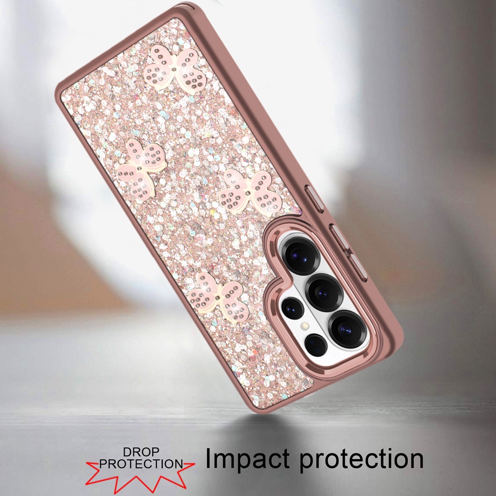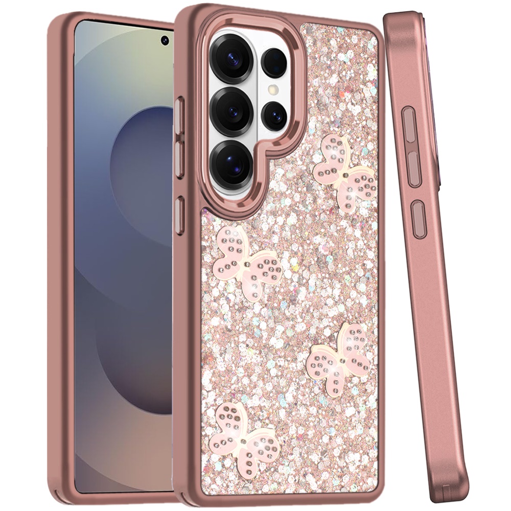 For Samsung s25 Ultra Cute Butterfly Ornaments Diamonds Shimmer Matching Metallic HQ Hybrid - Rose Gold