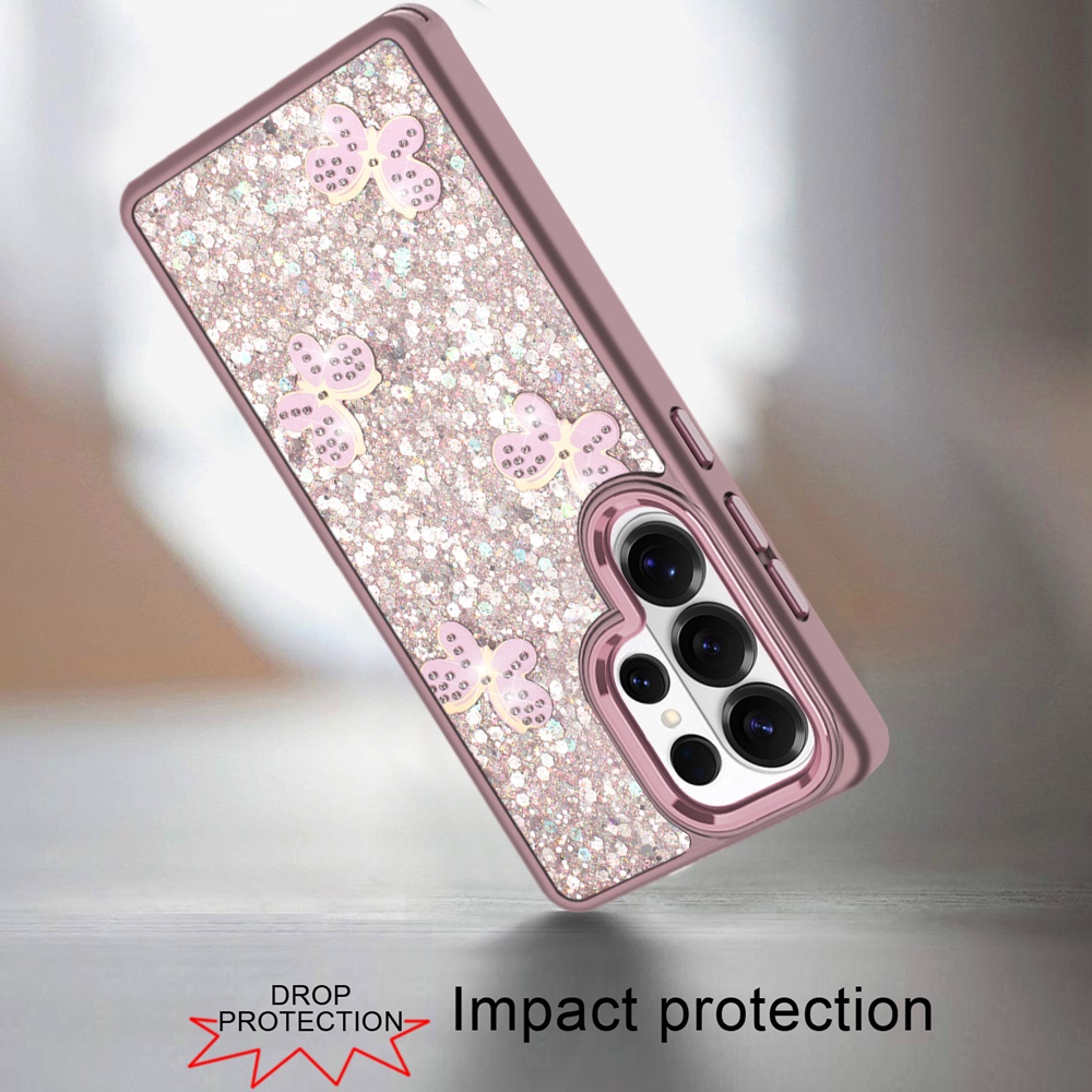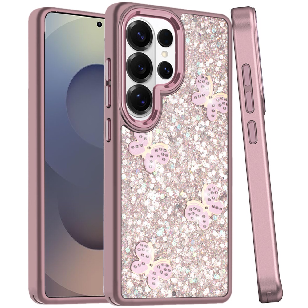 For Samsung s25 Ultra Cute Butterfly Ornaments Diamonds Shimmer Matching Metallic HQ Hybrid - Pink