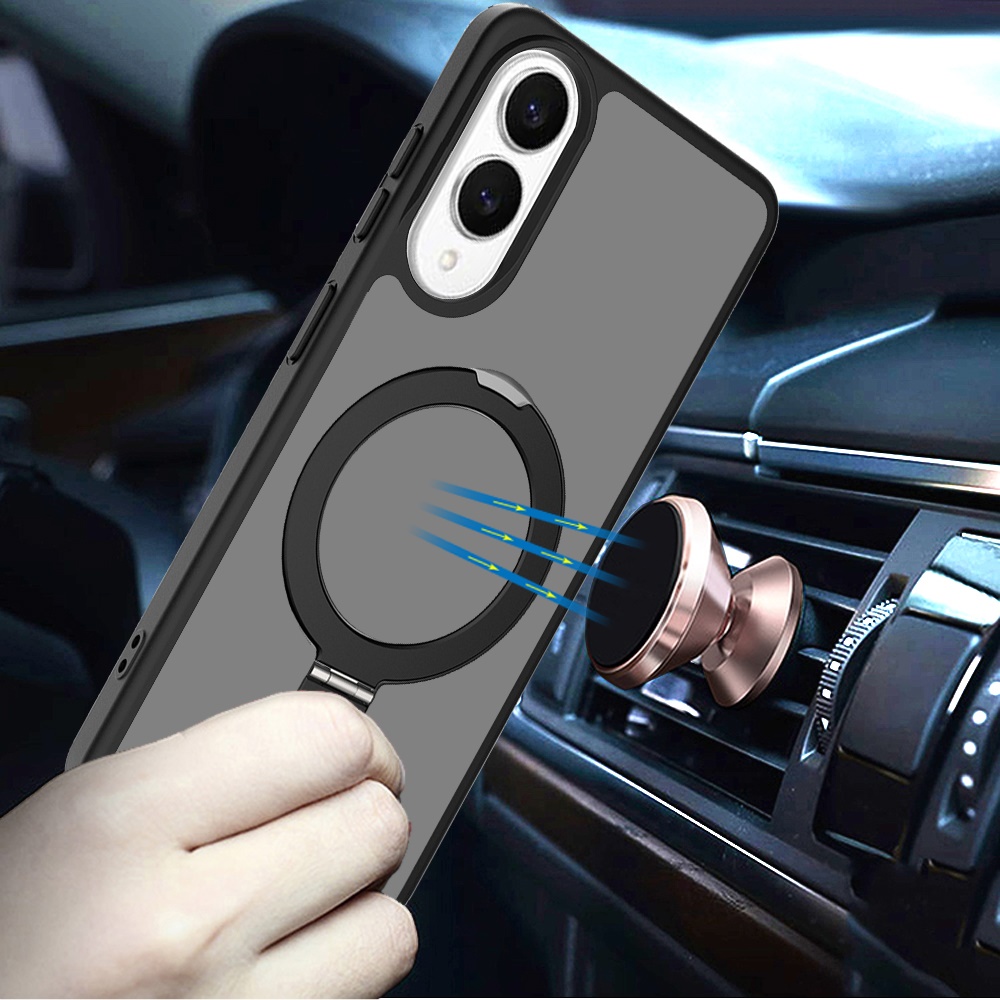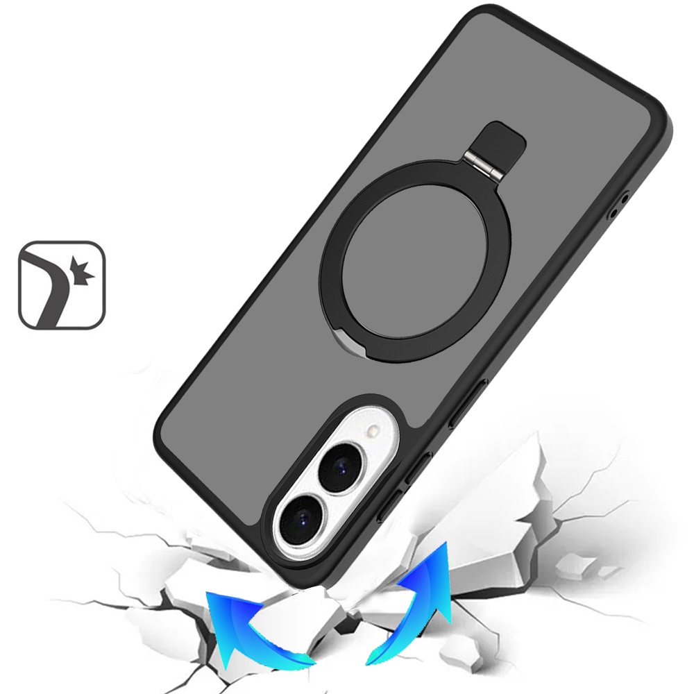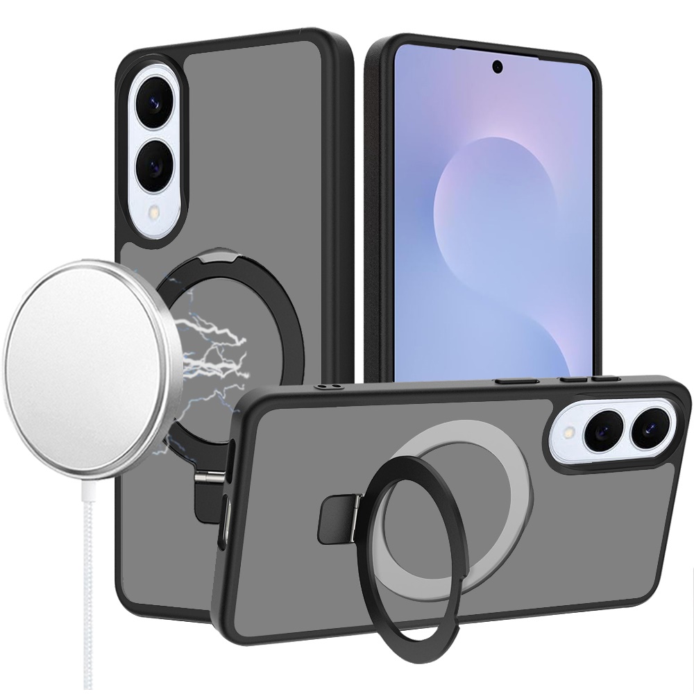 For Samsung Galaxy s25 Edge Magnetic Matching Ring Stand Full Rotation Matte Hybrid - Black