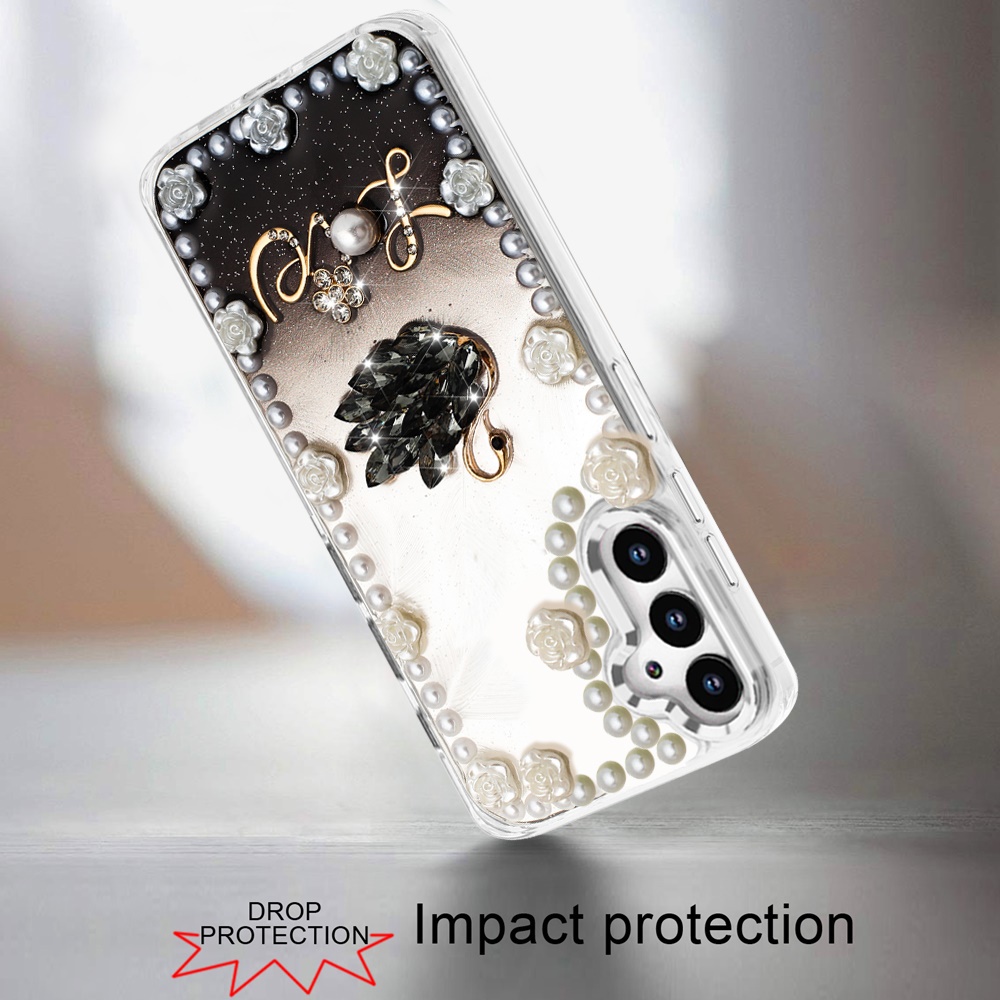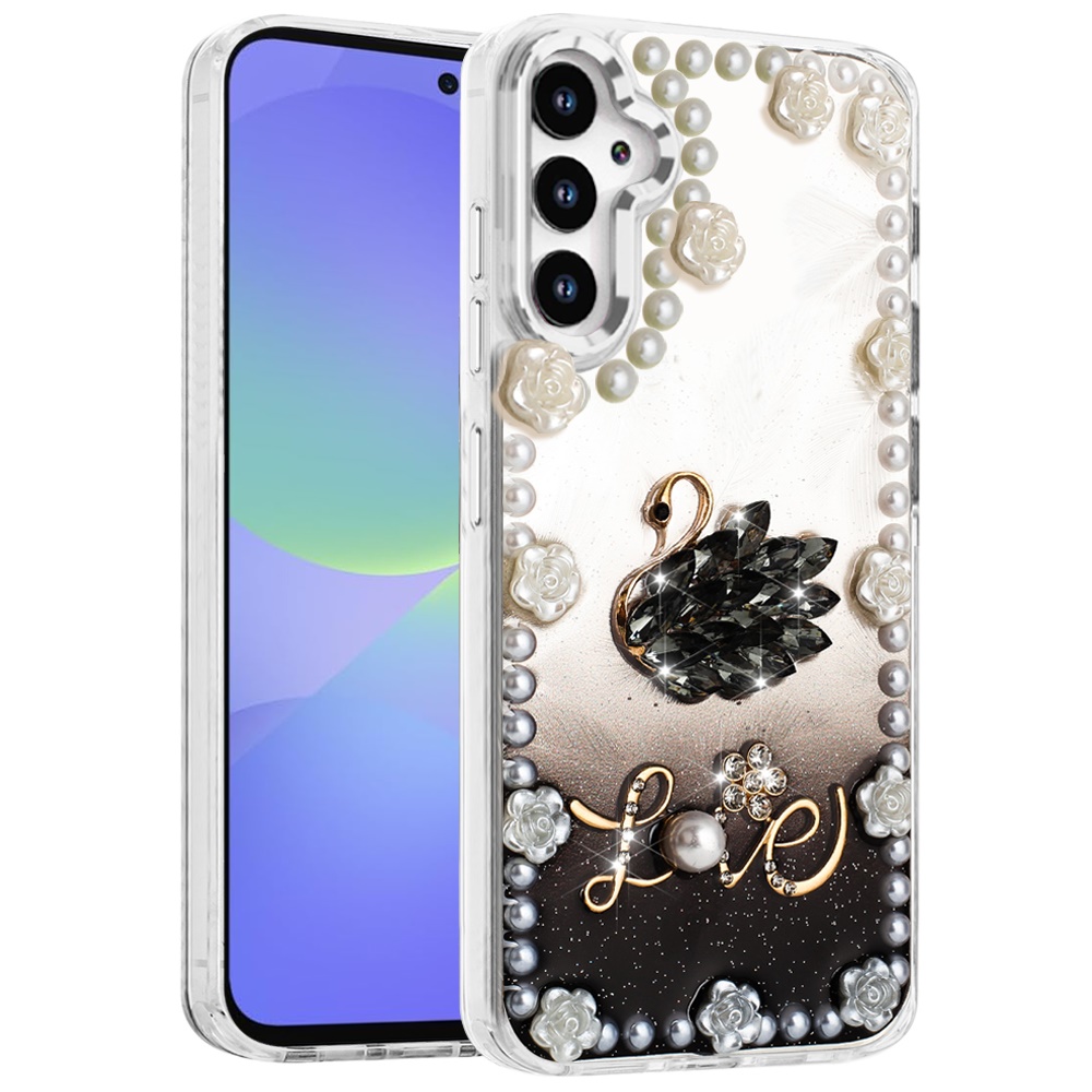 For Samsung Galaxy A36 Pearls Epoxy Glitter Ornaments Design Chrome Edged Case - 2
