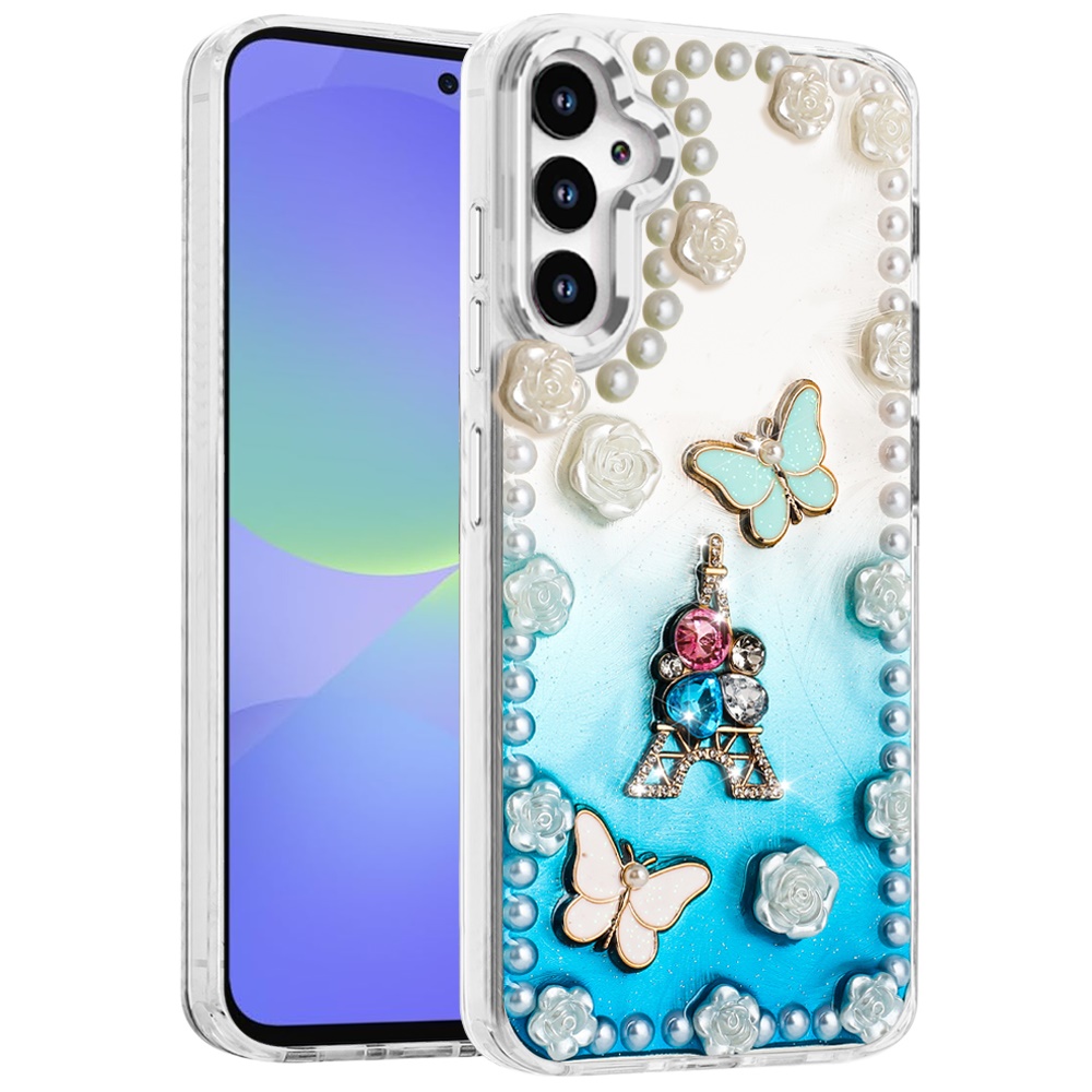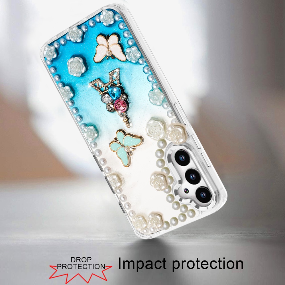 For Samsung Galaxy A36 Pearls Epoxy Glitter Ornaments Design Chrome Edged Case - 4