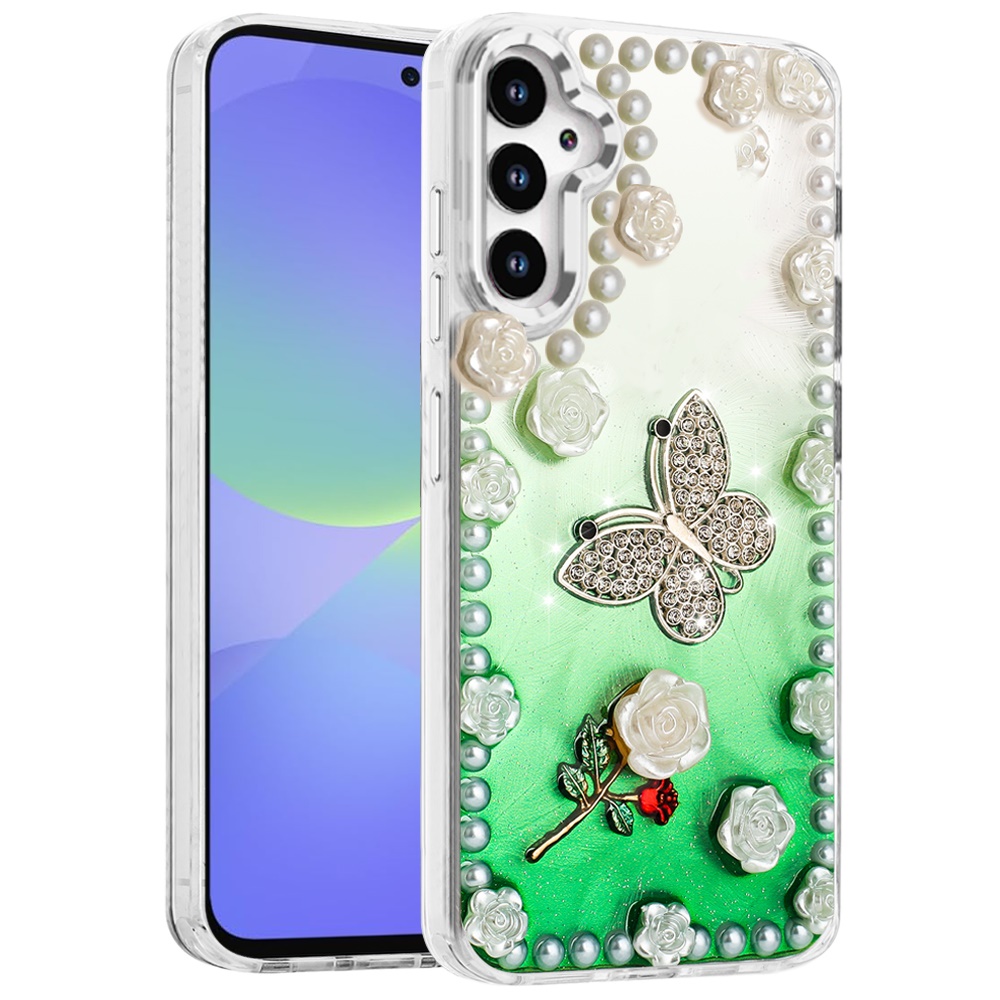 For Samsung Galaxy A36 Pearls Epoxy Glitter Ornaments Design Chrome Edged Case - 6