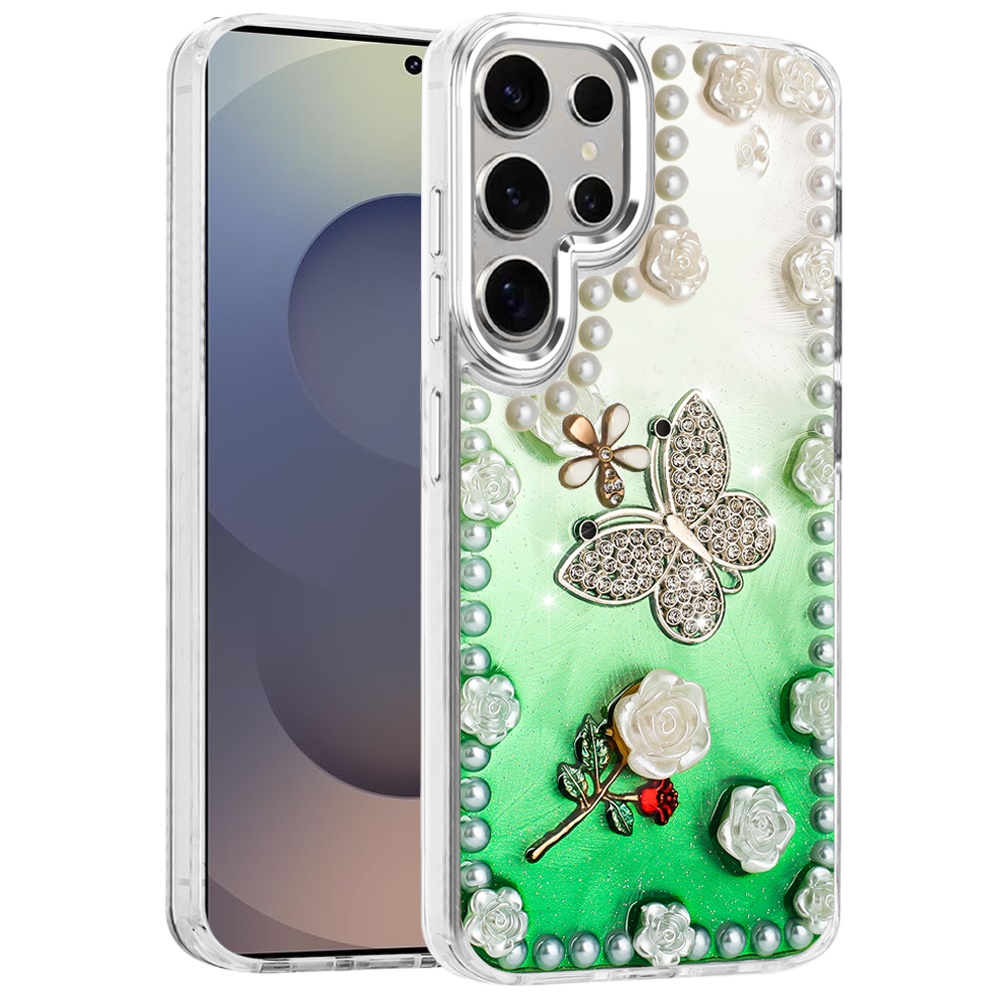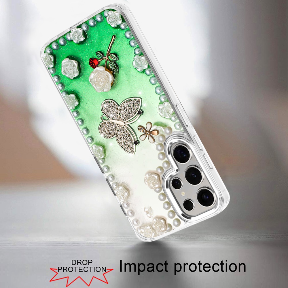 For Samsung s25 Ultra Pearls Epoxy Glitter Ornaments Design Chrome Edged Case - 6