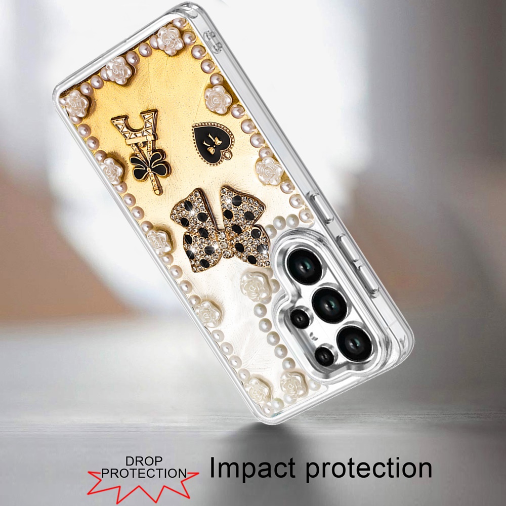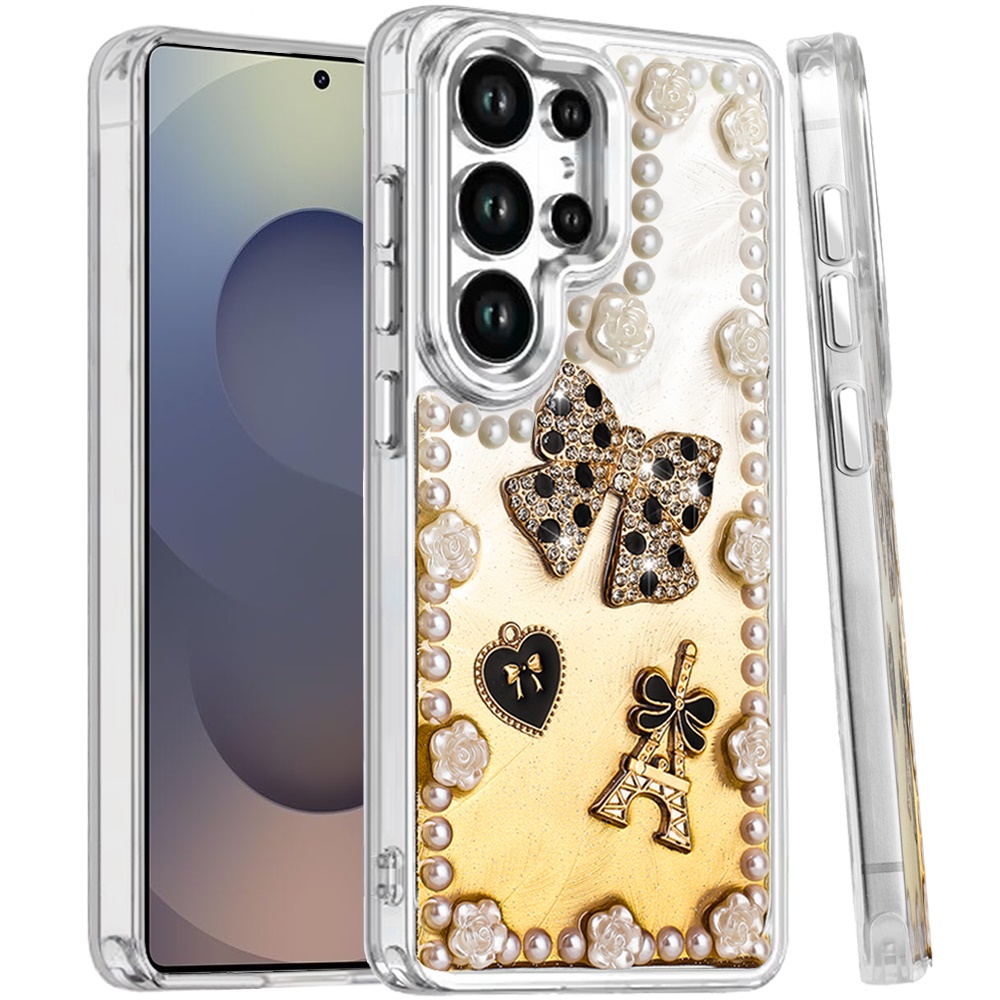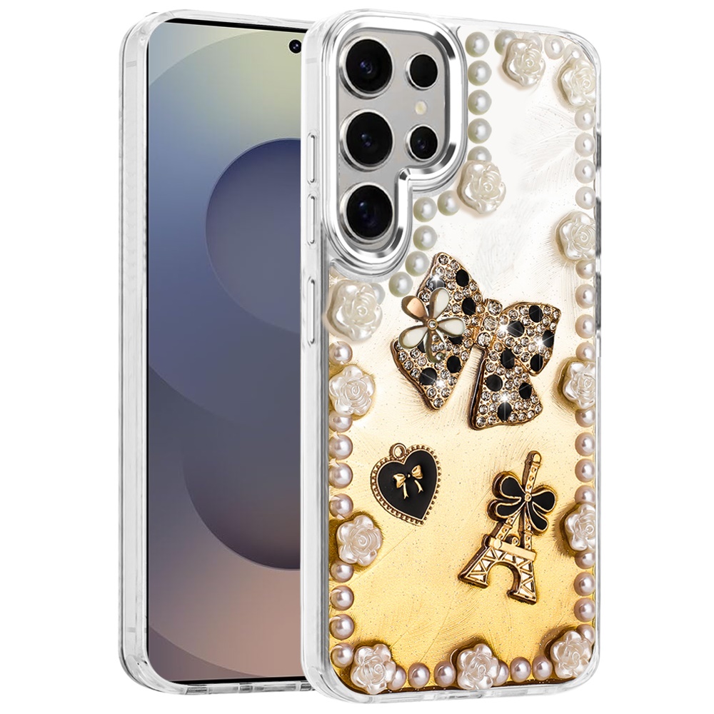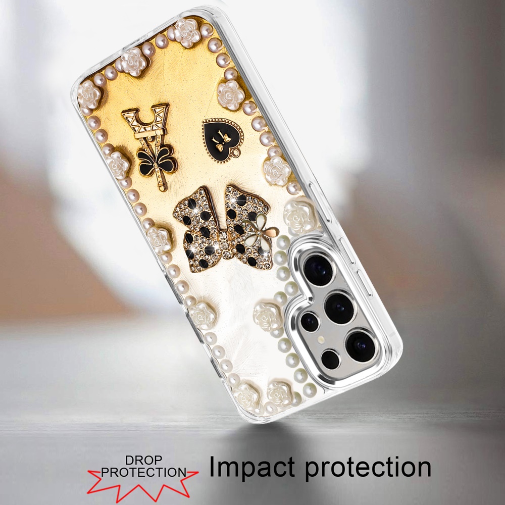 For Samsung s25 Ultra Pearls Epoxy Glitter Ornaments Design Chrome Edged Case - 9
