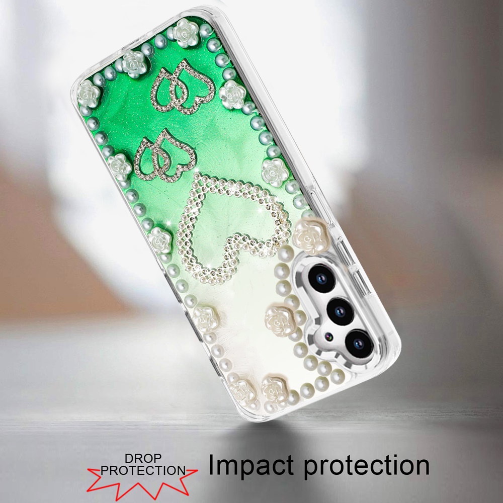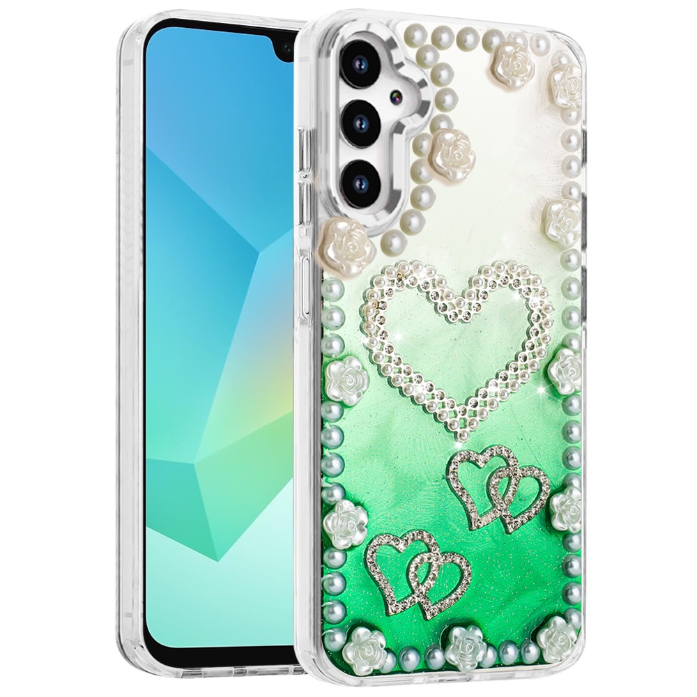 For Samsung A16 5G Pearls Epoxy Glitter Ornaments Design Chrome Edged Case - 5