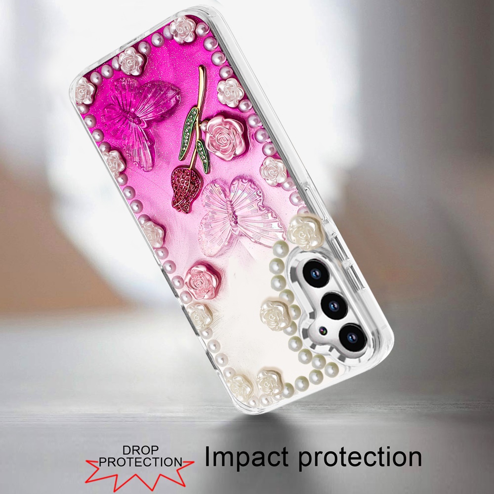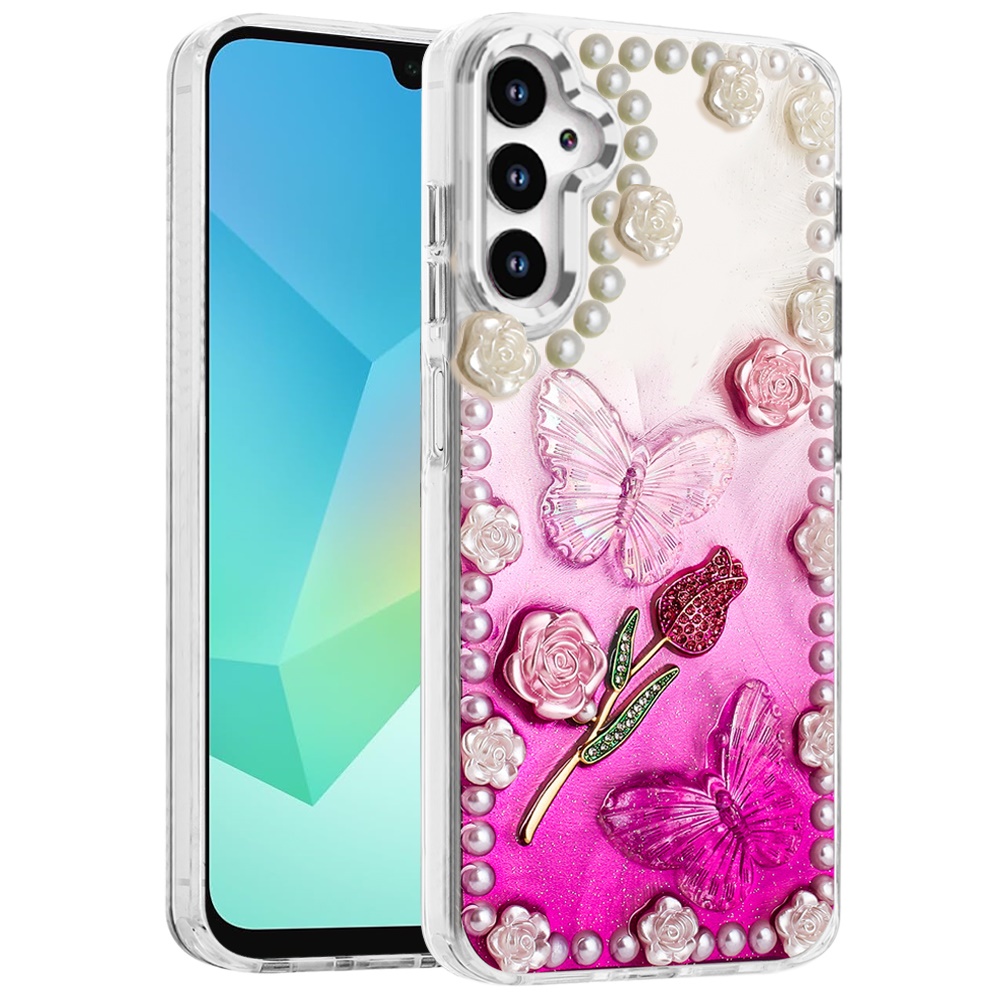 For Samsung A16 5G Pearls Epoxy Glitter Ornaments Design Chrome Edged Case - 7