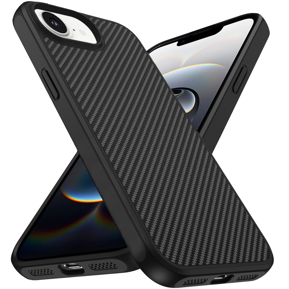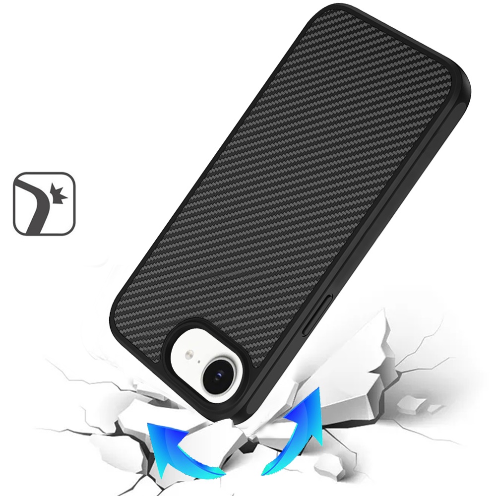 For iPhone 16E (E edition) / SE4 (2025) CarbonFiber Design Magnetic Ring HQ Thick 2.0mm Hybrid Case - Black