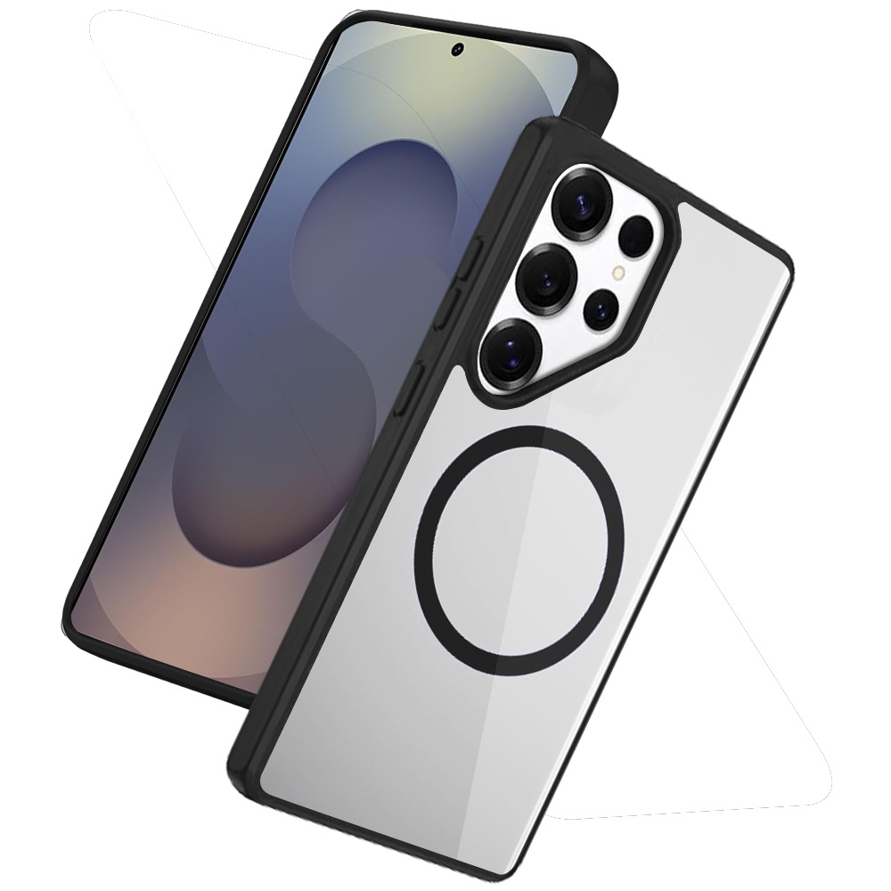 For Samsung s25 Ultra Magnetic Ring HQ Transparent Thick 2.0mm Hybrid Case - Black