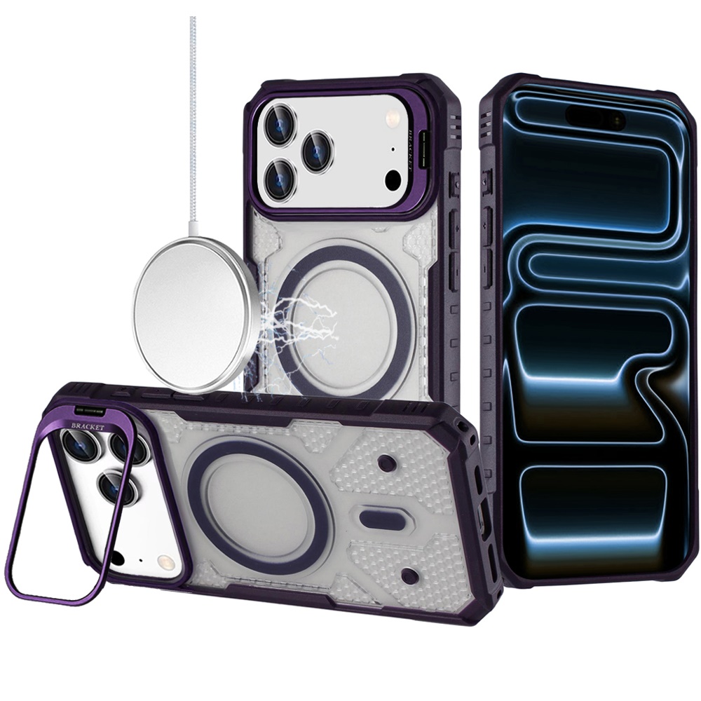 For iPhone 17 Pro Tough Dotted Design HQ Hybrid with Metallic Camera Stand Magnetic Ring Case - Dark Purple