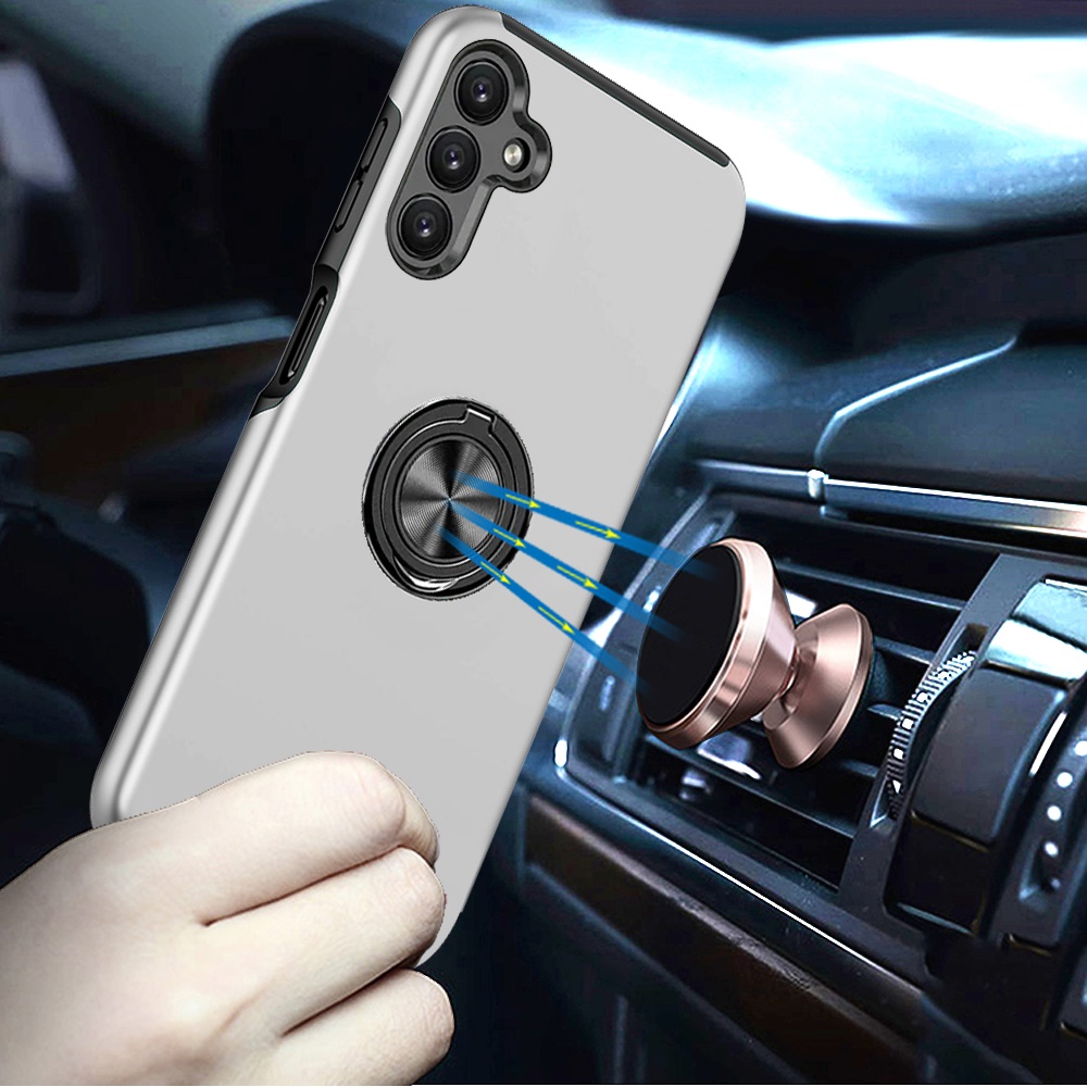 For Samsung A17 5G CHIEF Oil Painted Magnetic Ring Stand Hybrid Case Cover - Silver
