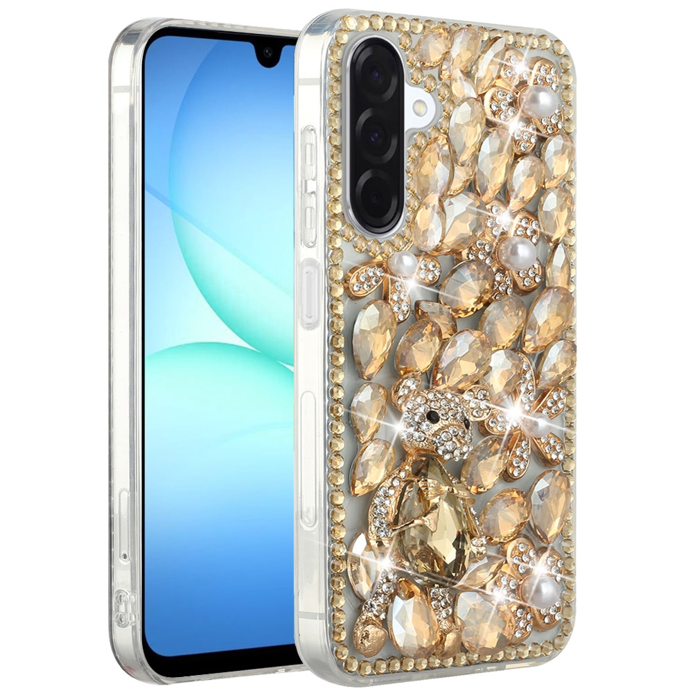 For Samsung A17 5G Full Diamond with Ornaments Case Cover - Gold Panda Floral