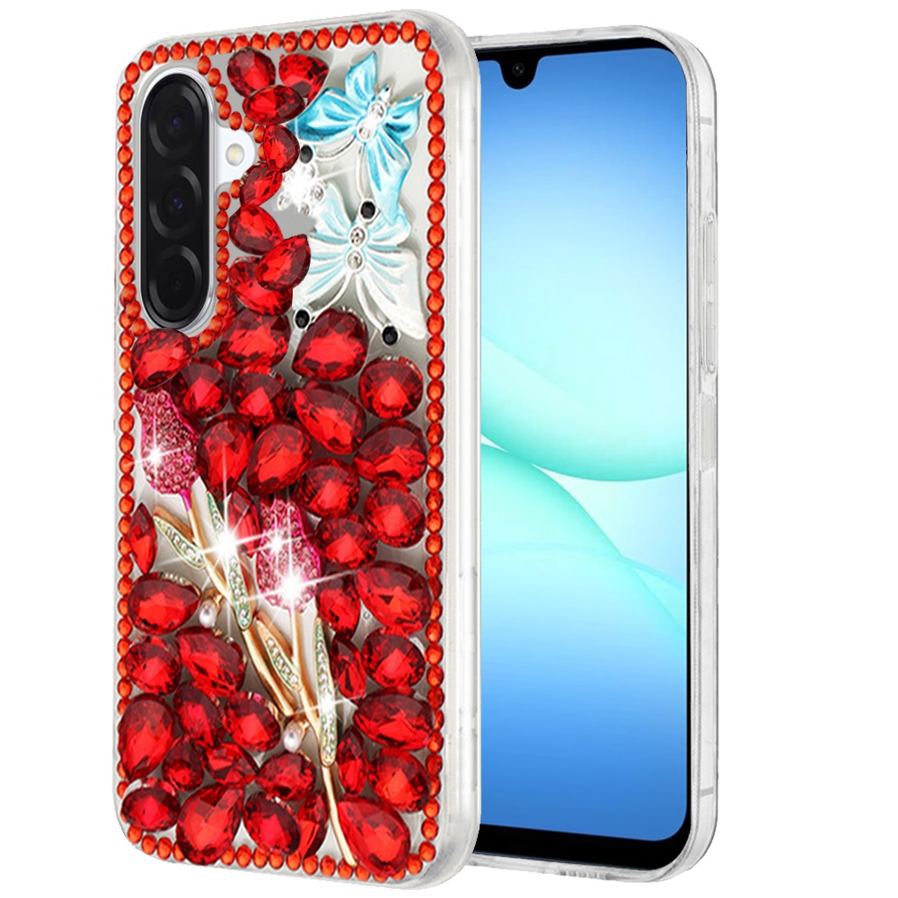 For Samsung A17 5G Full Diamond with Ornaments Case Cover - Red Exquisite Garden