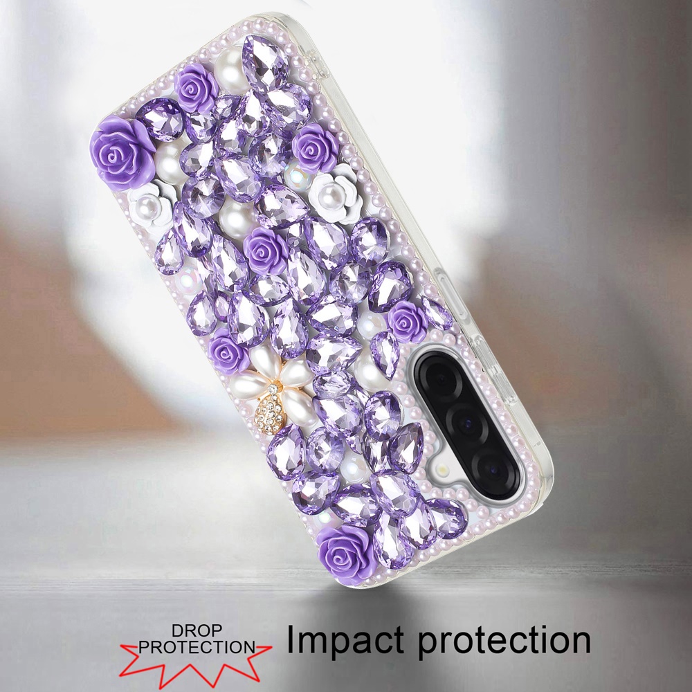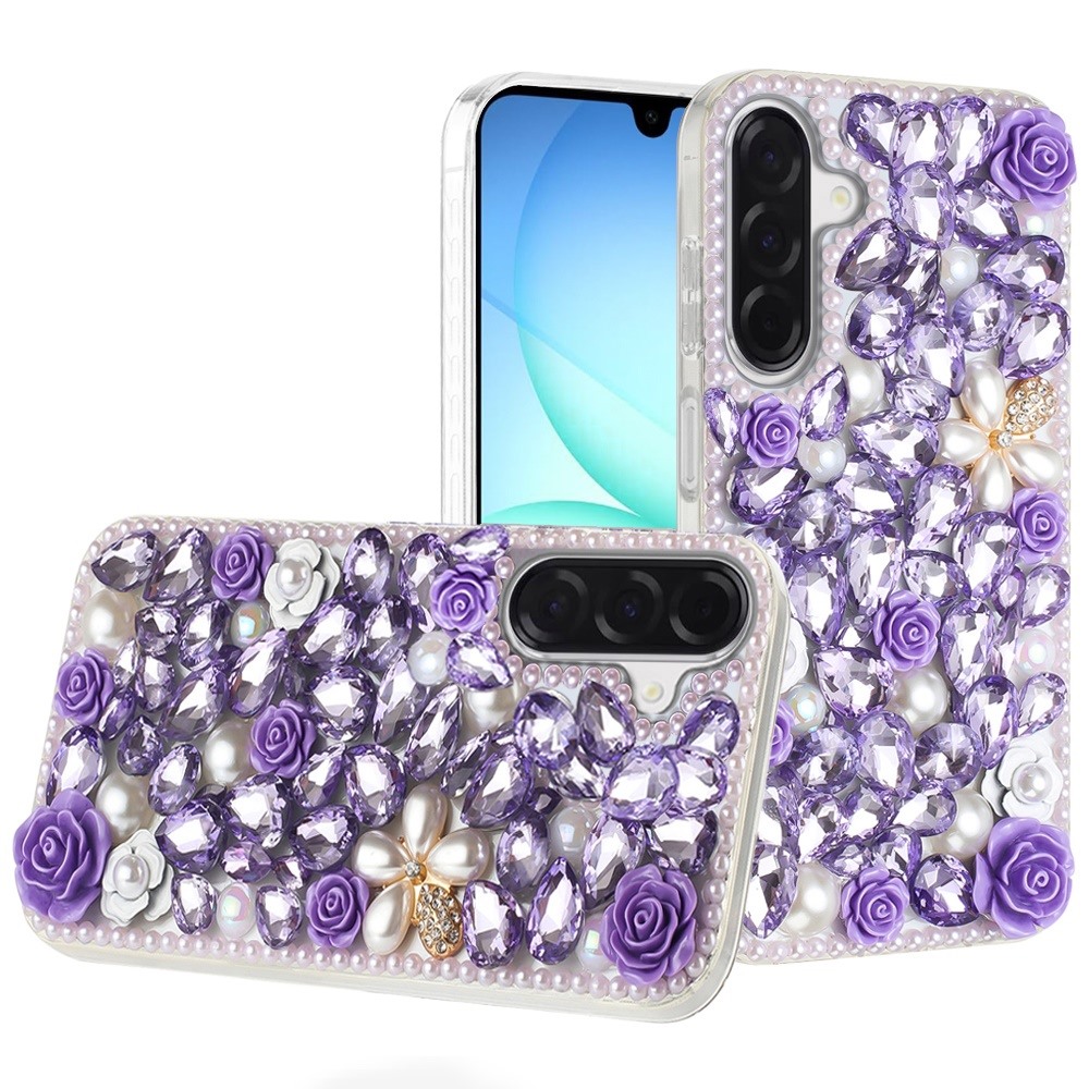 For Samsung A17 5G Rose Flower Full Diamond Bling Stones - Purple