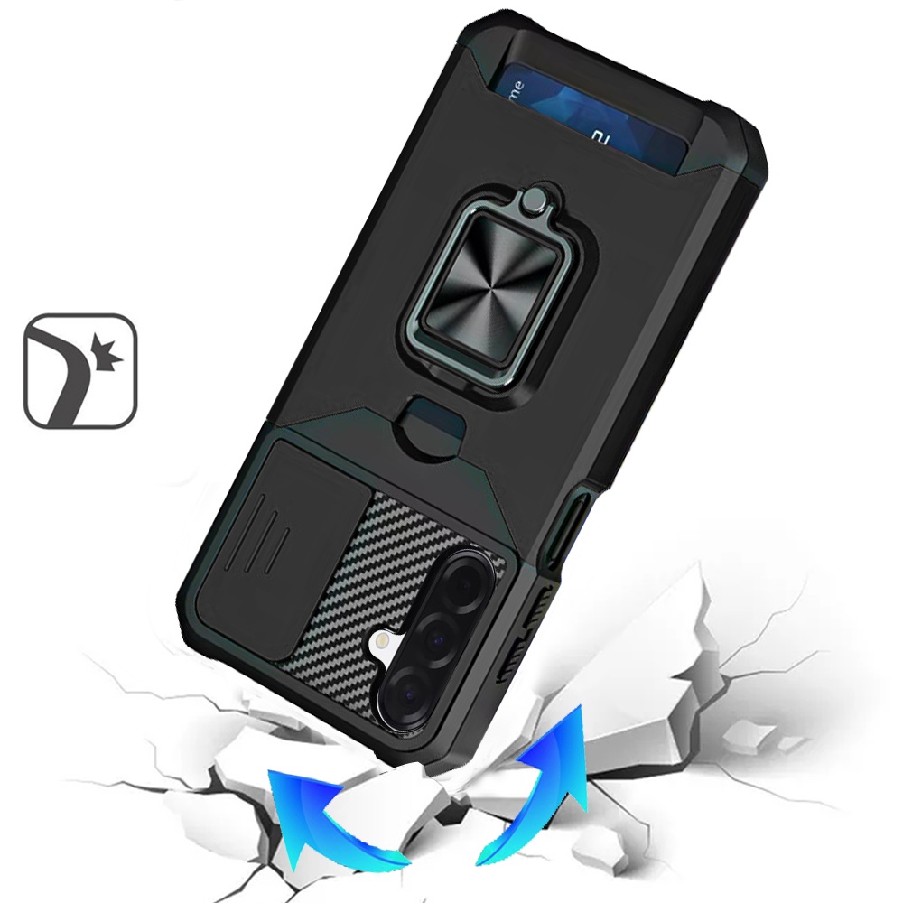 For Samsung A17 5G Multi-Functional Card Magnetic Ring Stand Hybrid Camera Case Cover - Black