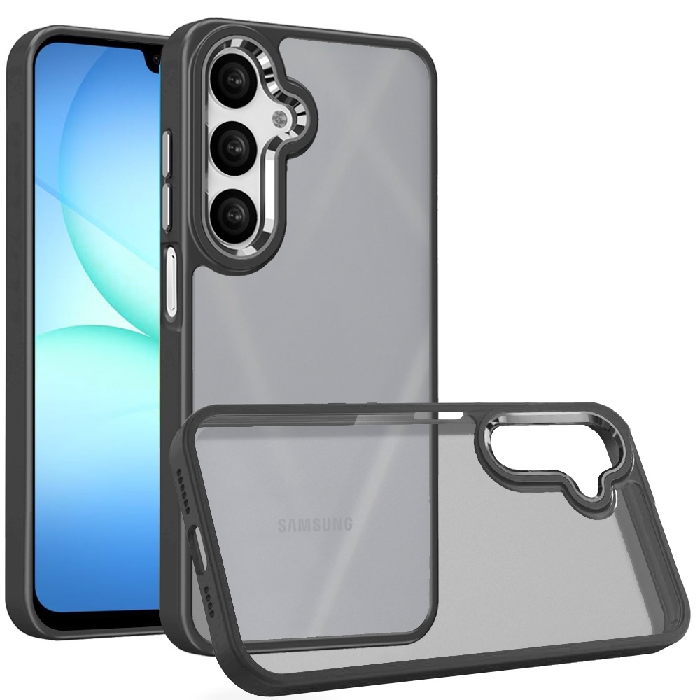 For Samsung A17 5G Finest Transparent Thick Acrylic Hybrid Metal Buttons Cover Case - Black