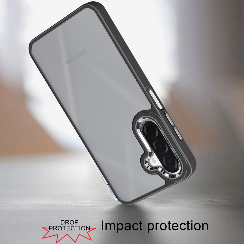 For Samsung A17 5G Polished Oil Thick Acrylic Metal Button Hybrid Case Cover - Black