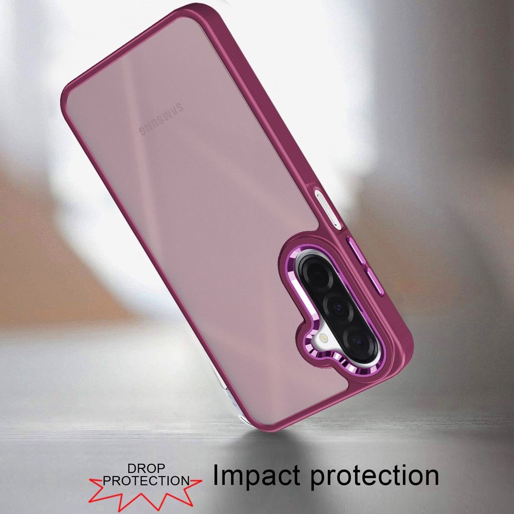For Samsung A17 5G Polished Oil Thick Acrylic Metal Button Hybrid Case Cover - Burgundy